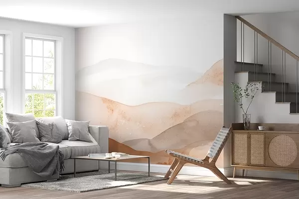 Papier peint photo Montagnes avec effet de colline aquarelle aux tons chauds N° w09223v1