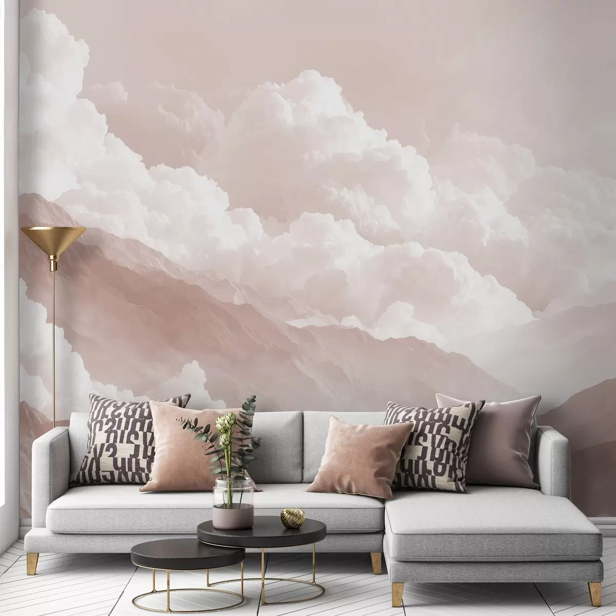 Papier peint photo Paysage de montagne doux dans des tons légers et poudreux N° w09226v1