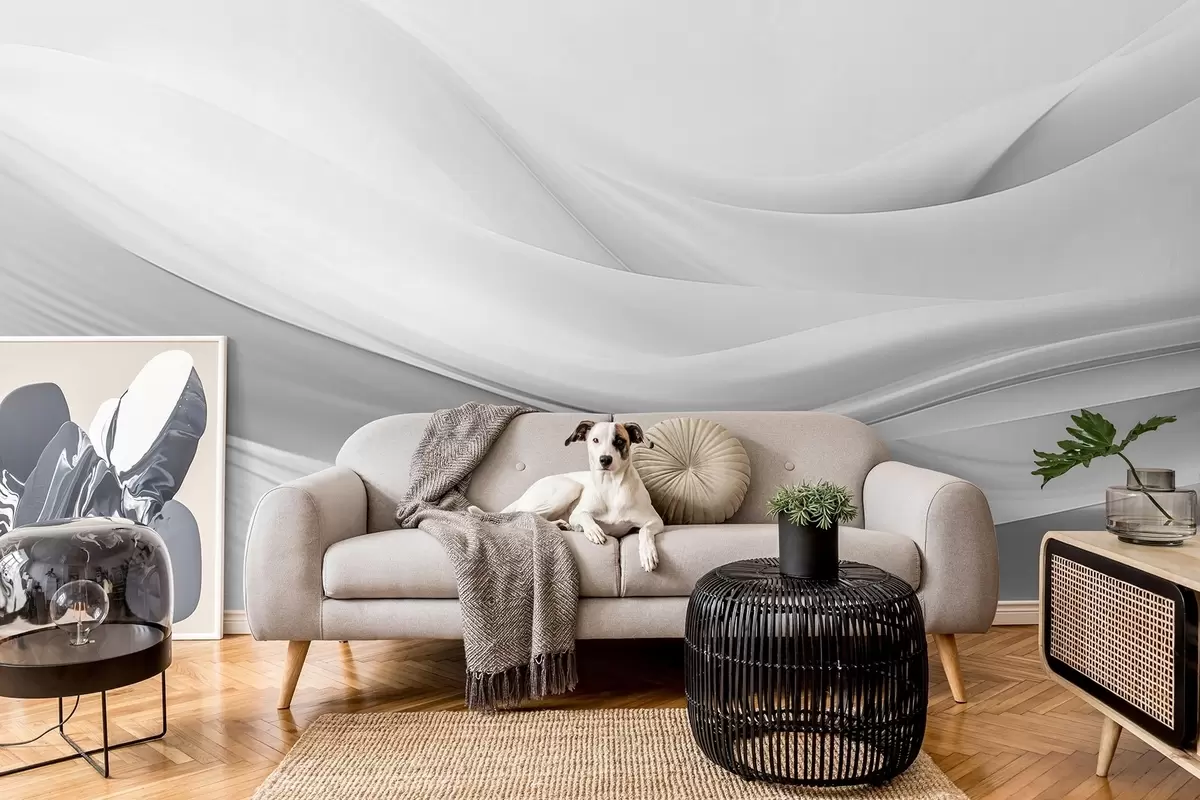 Papier peint photo Vagues en tissu gris dans un style abstrait minimaliste N° w09279v1