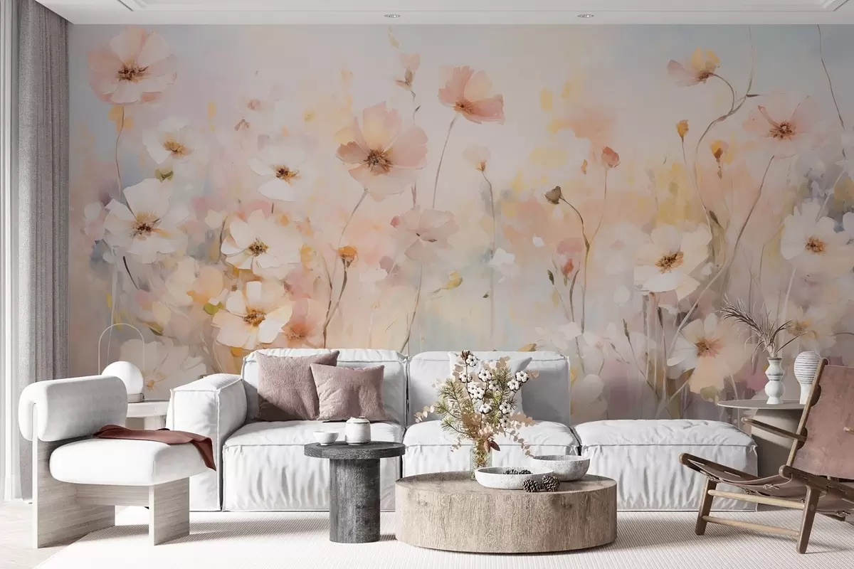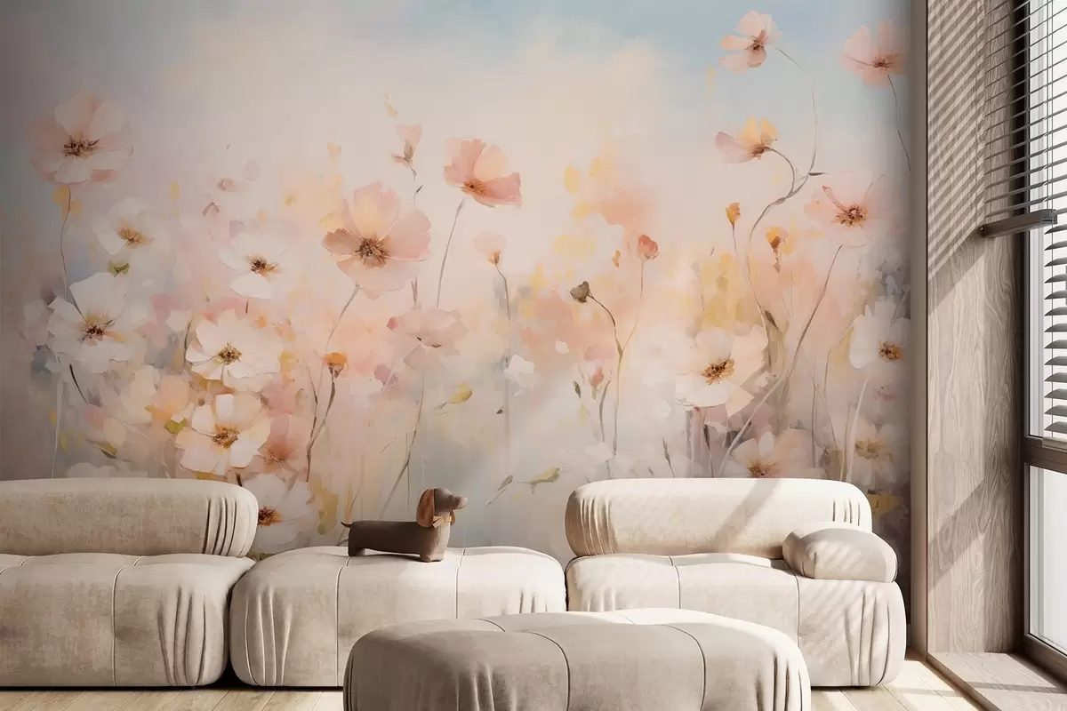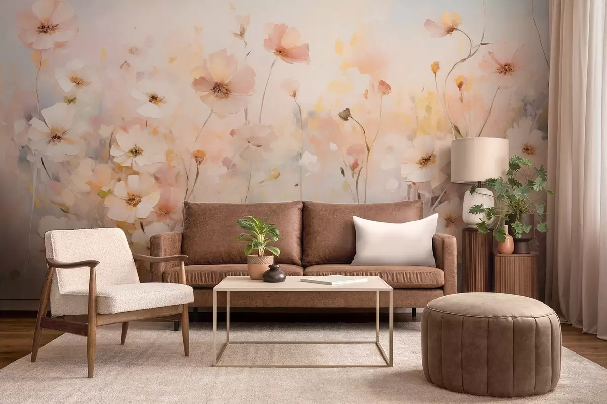 Papier peint photo Fleurs sauvages dans des tons pastel en style aquarelle N° w09280