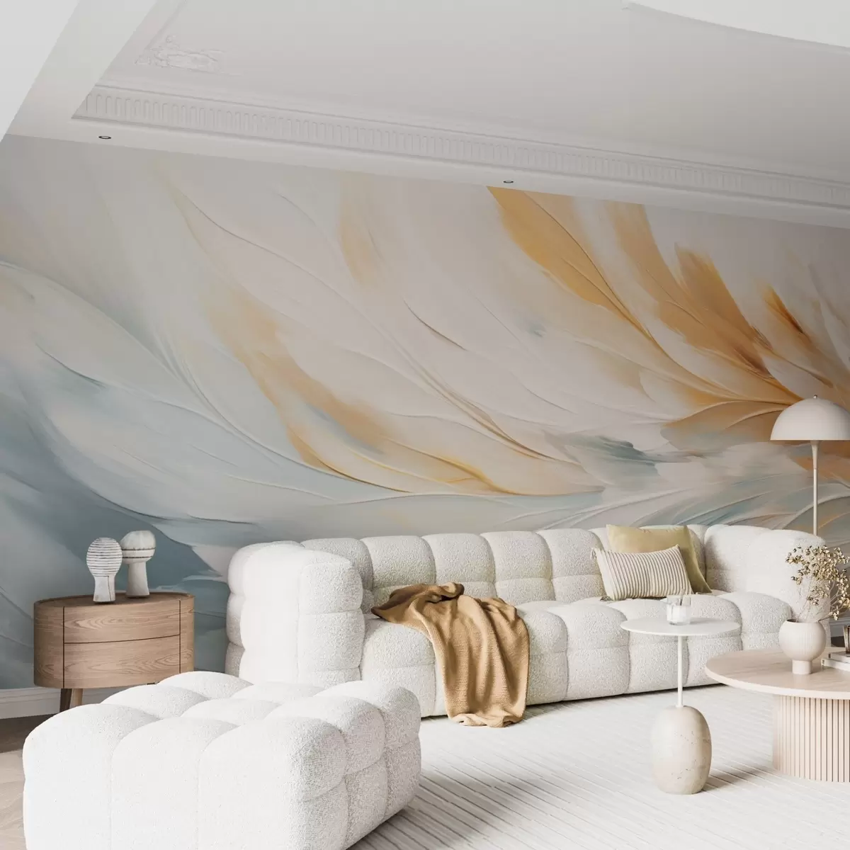 Papier peint photo Plumes abstraites dans des tons doux de bleu et d'orange N° w09283