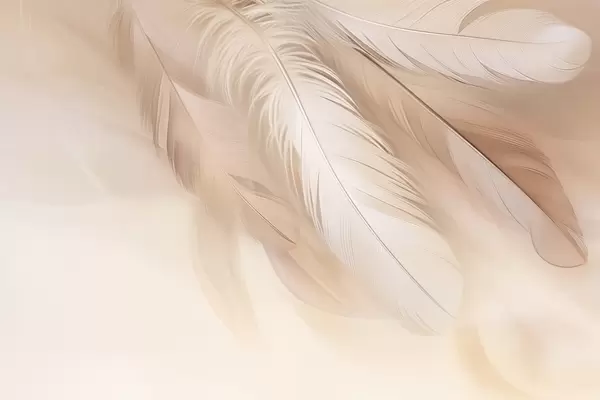 Papier peint photo Des plumes en apesanteur dans une douce brume de tons chauds N° w09286