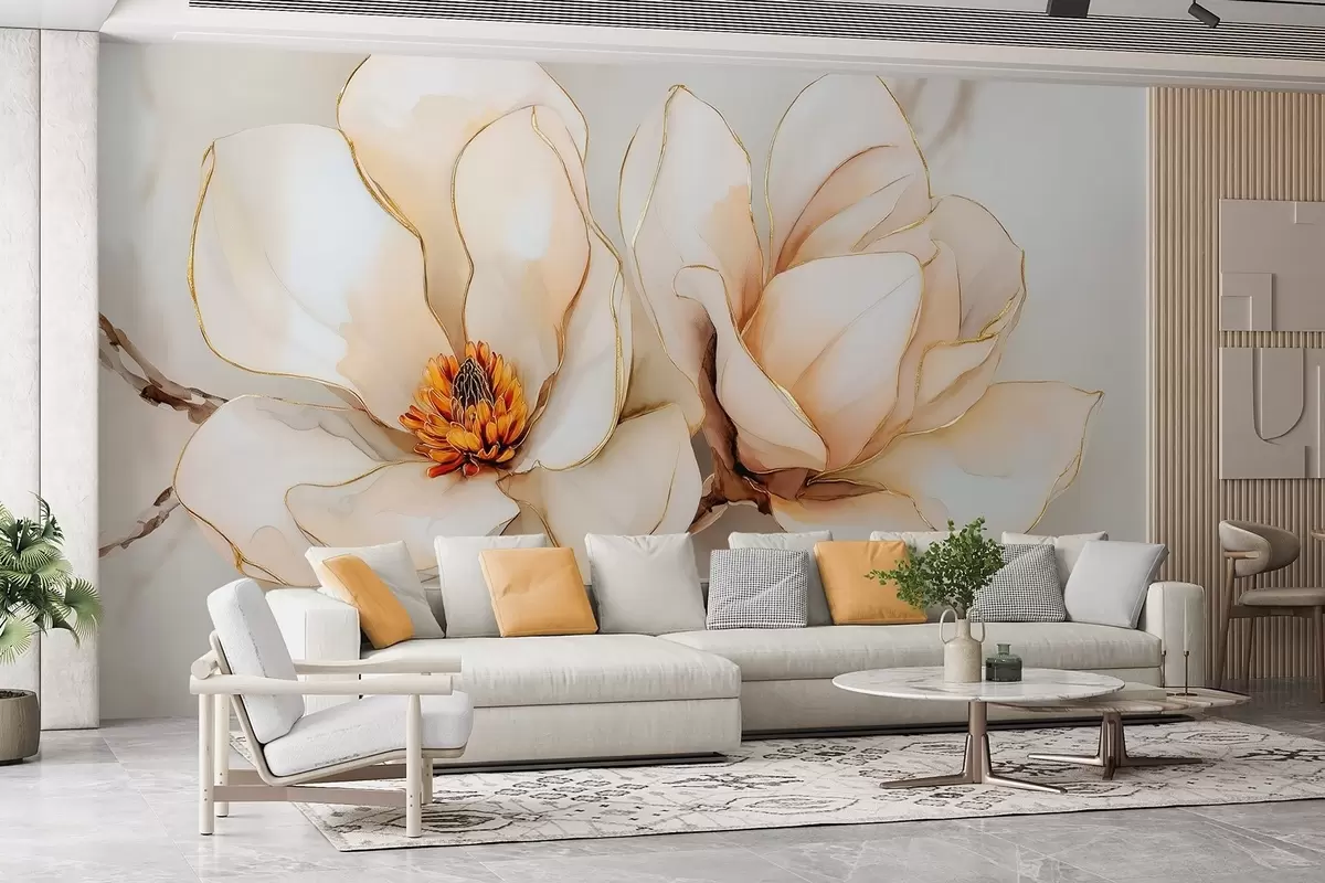 Papier peint photo Grandes fleurs de magnolia clair aux pétales souples N° w09308