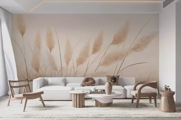 Papier peint photo Herbe de pampa beige tendre dans le champ N° w09324