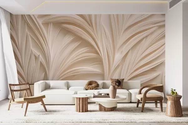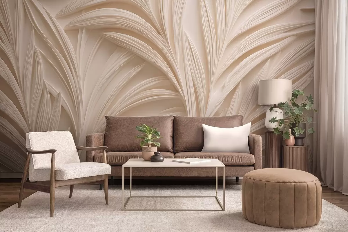Papier peint photo Feuilles décoratives beiges en 3D N° w09351