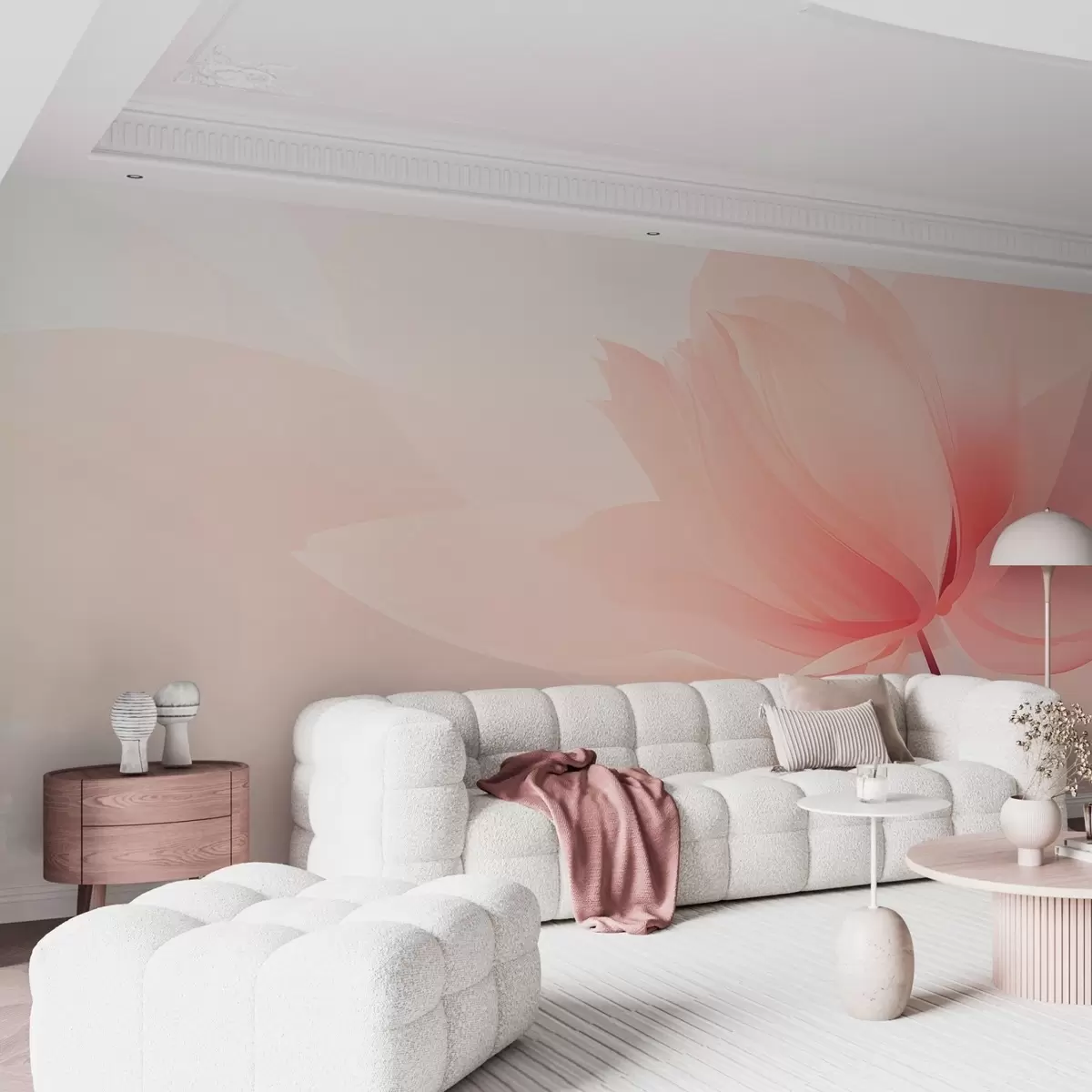 Papier peint photo Grande fleur aux tons doux de rose pêche N° w09356