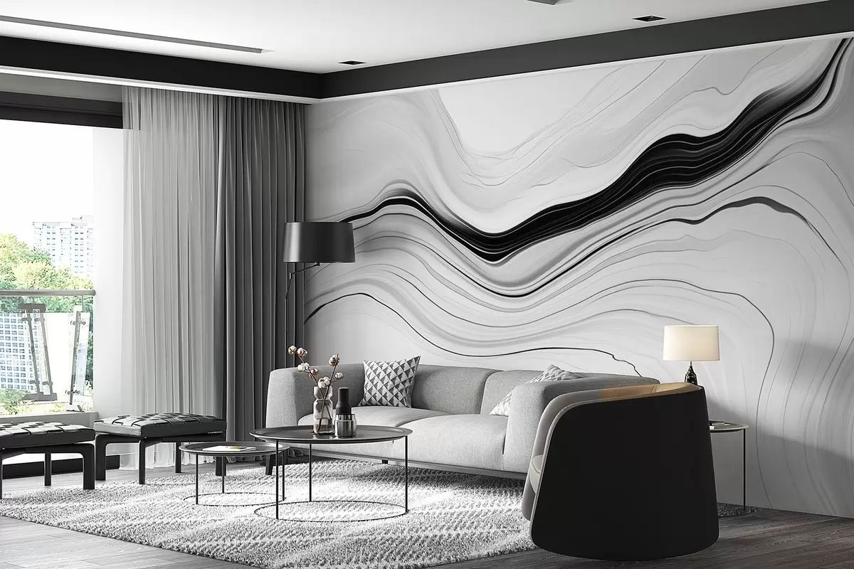 Papier peint photo Motif noir et blanc avec effet de couches de marbre N° w09358