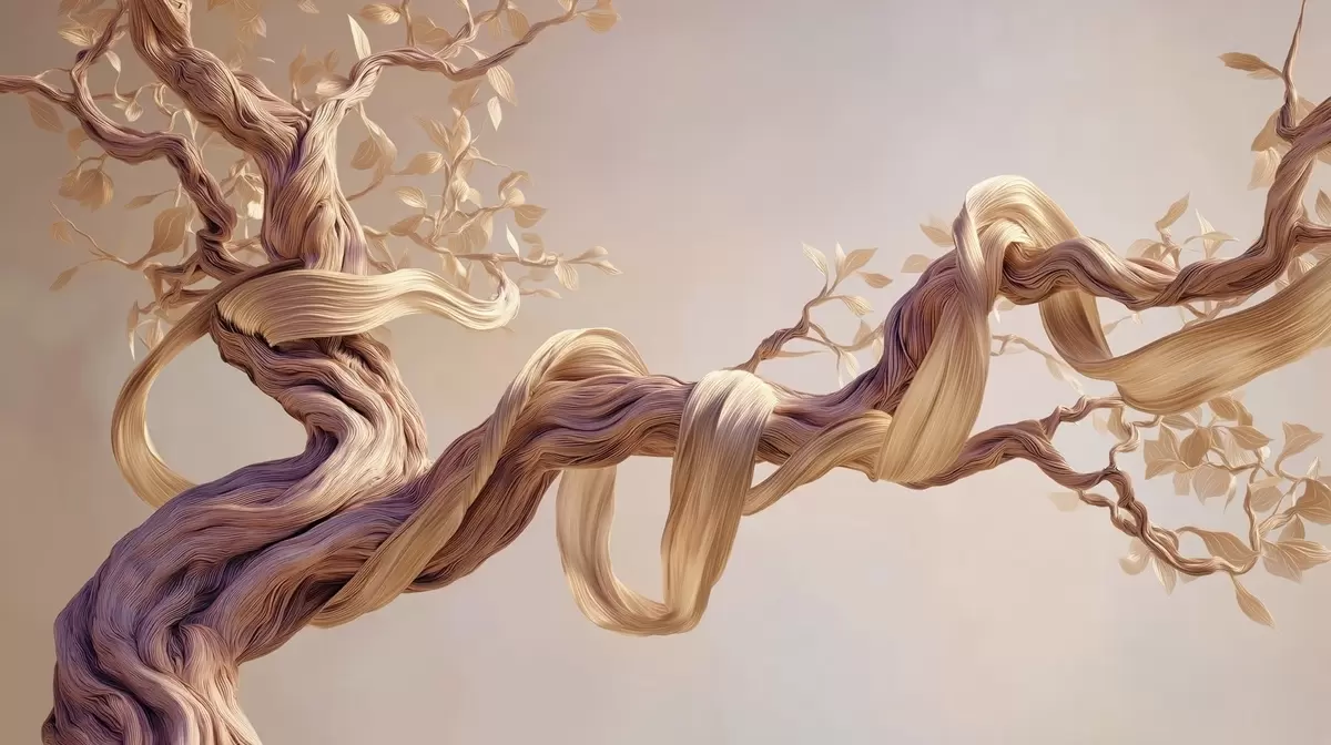 Papier peint photo Tronc d'arbre torsadé avec feuilles décoratives w09360
