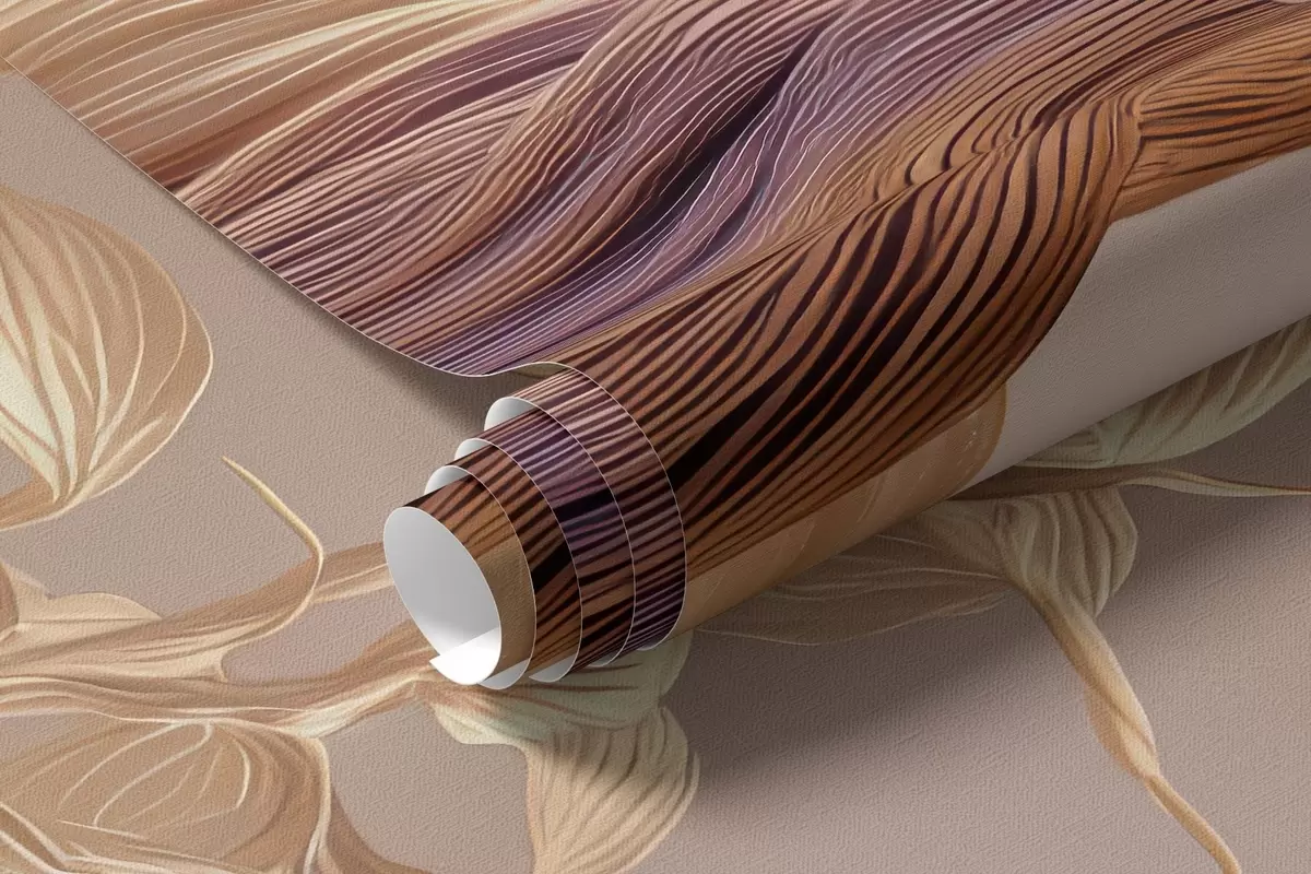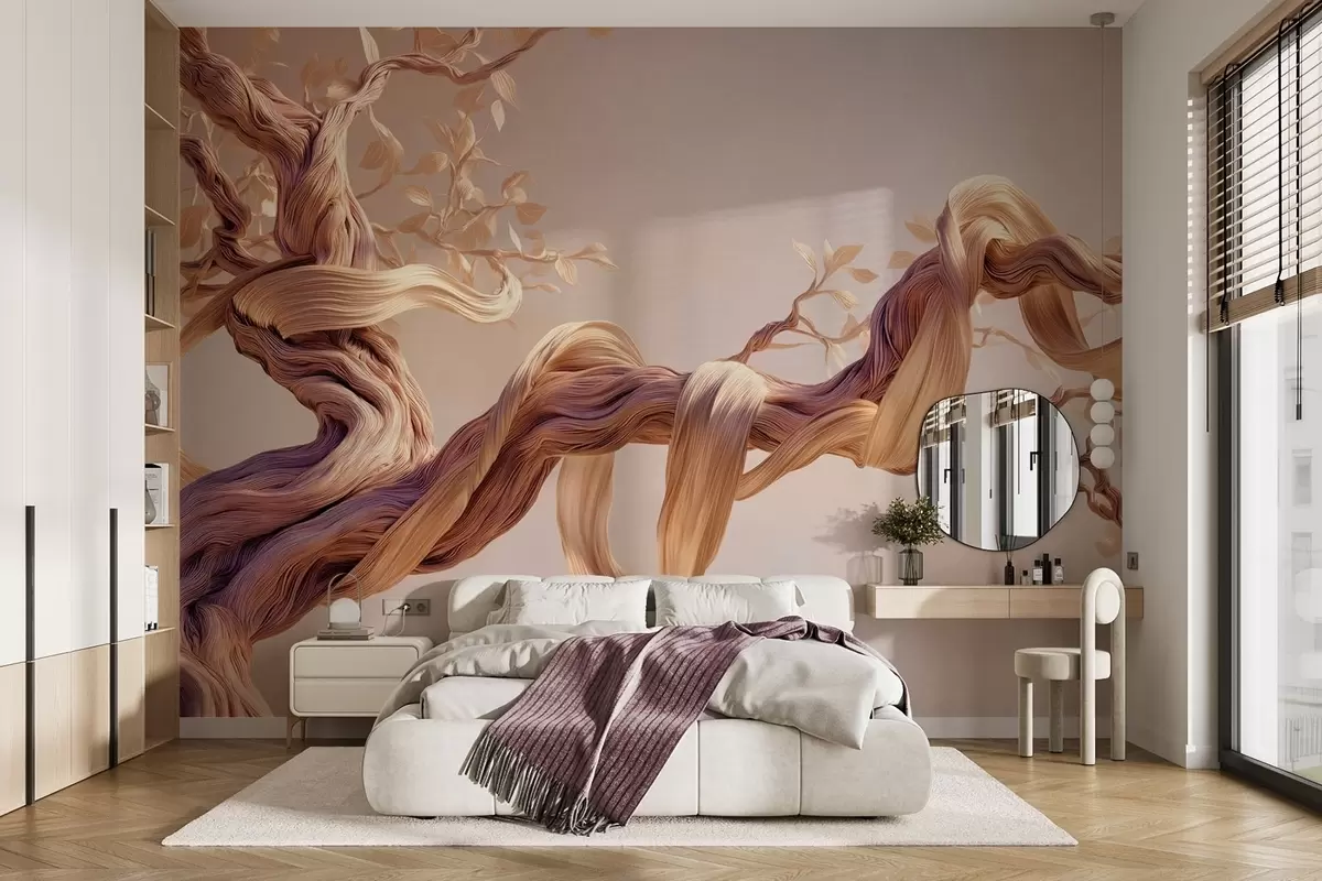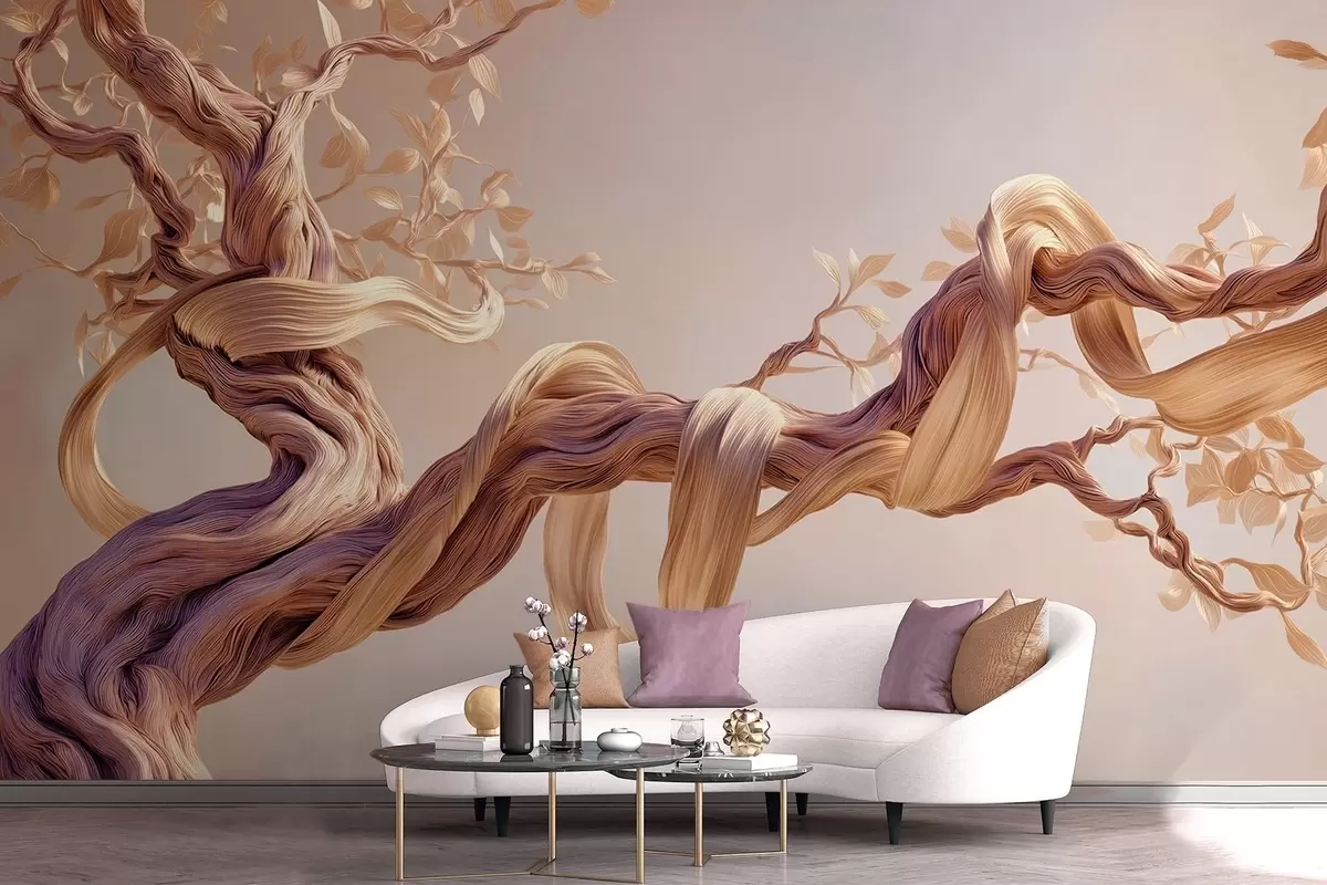 Papier peint photo Tronc d'arbre torsadé avec feuilles décoratives N° w09360