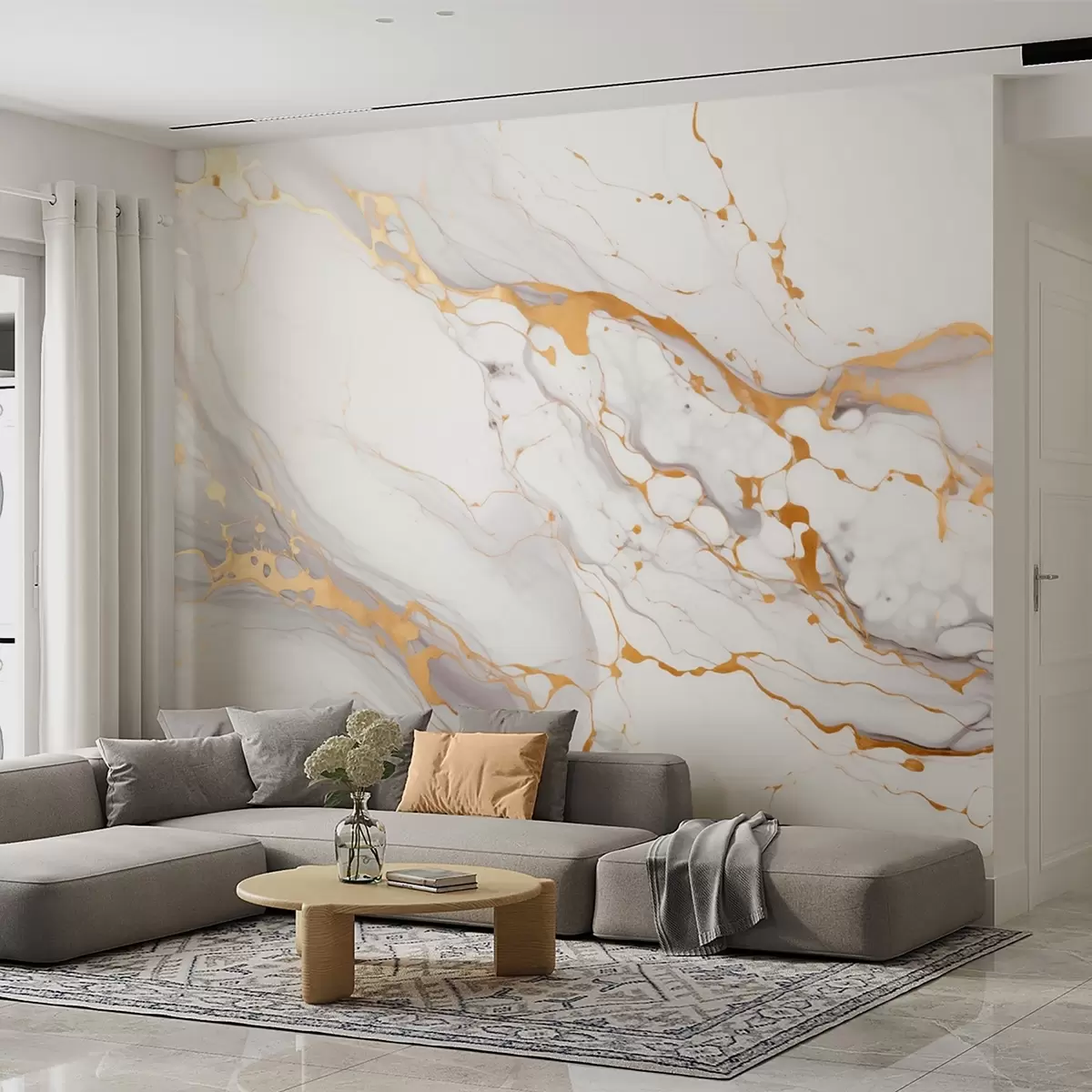 Papier peint photo Imitation de la texture du marbre avec des transitions grises douces et des accents jaunes N° w09362