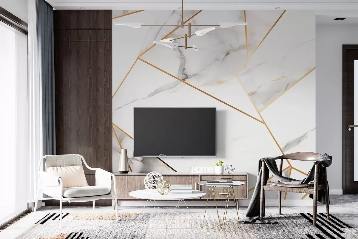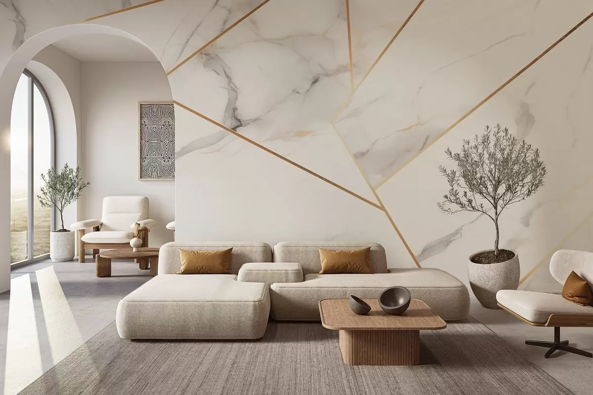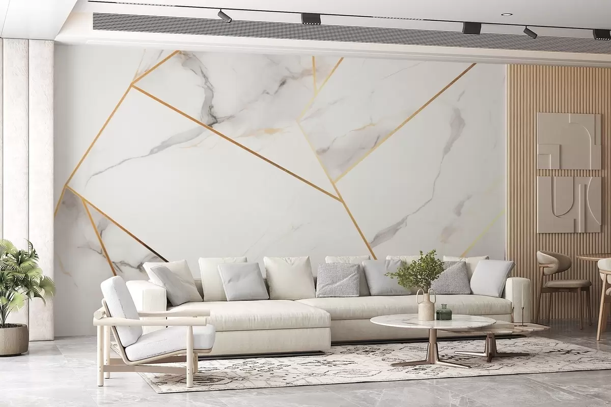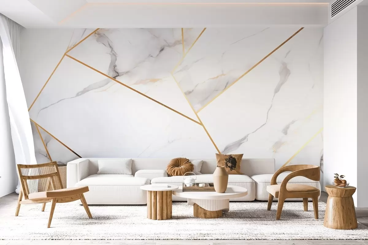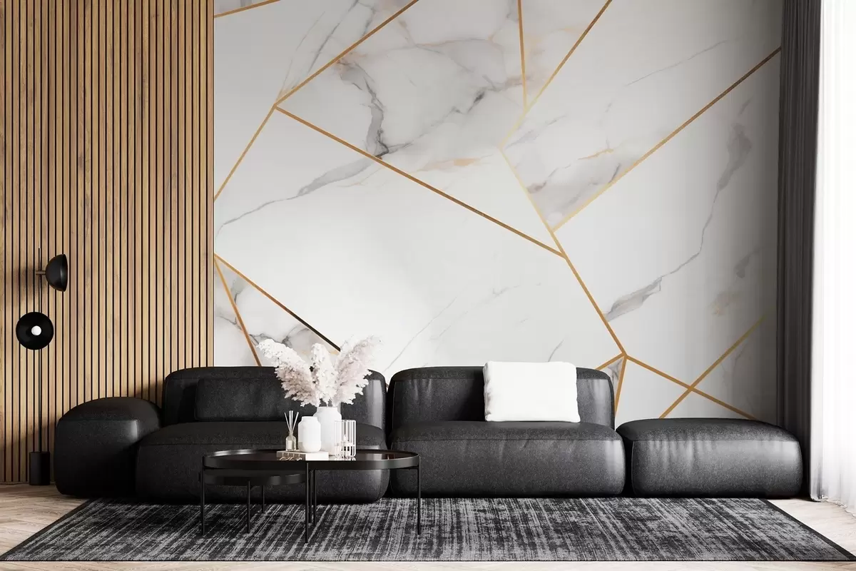 Papier peint photo Imitation d'une surface en marbre avec un motif géométrique jaune N° w09363