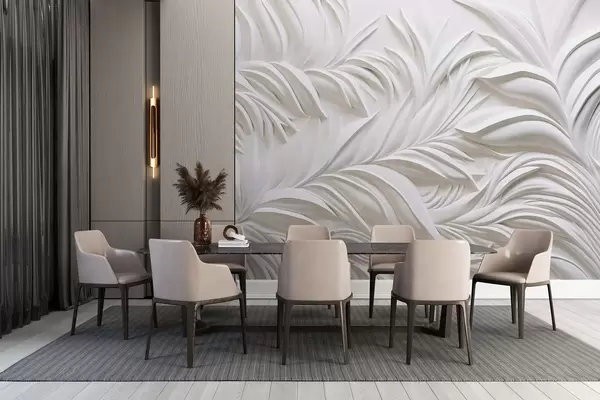 Papier peint photo Feuilles blanches texturées et éléments floraux abstraits, esthétique minimaliste N° w09378