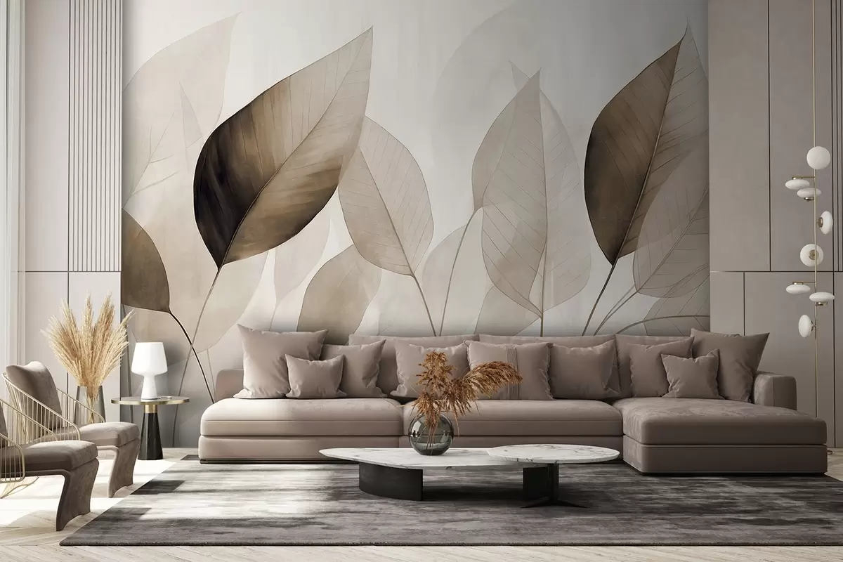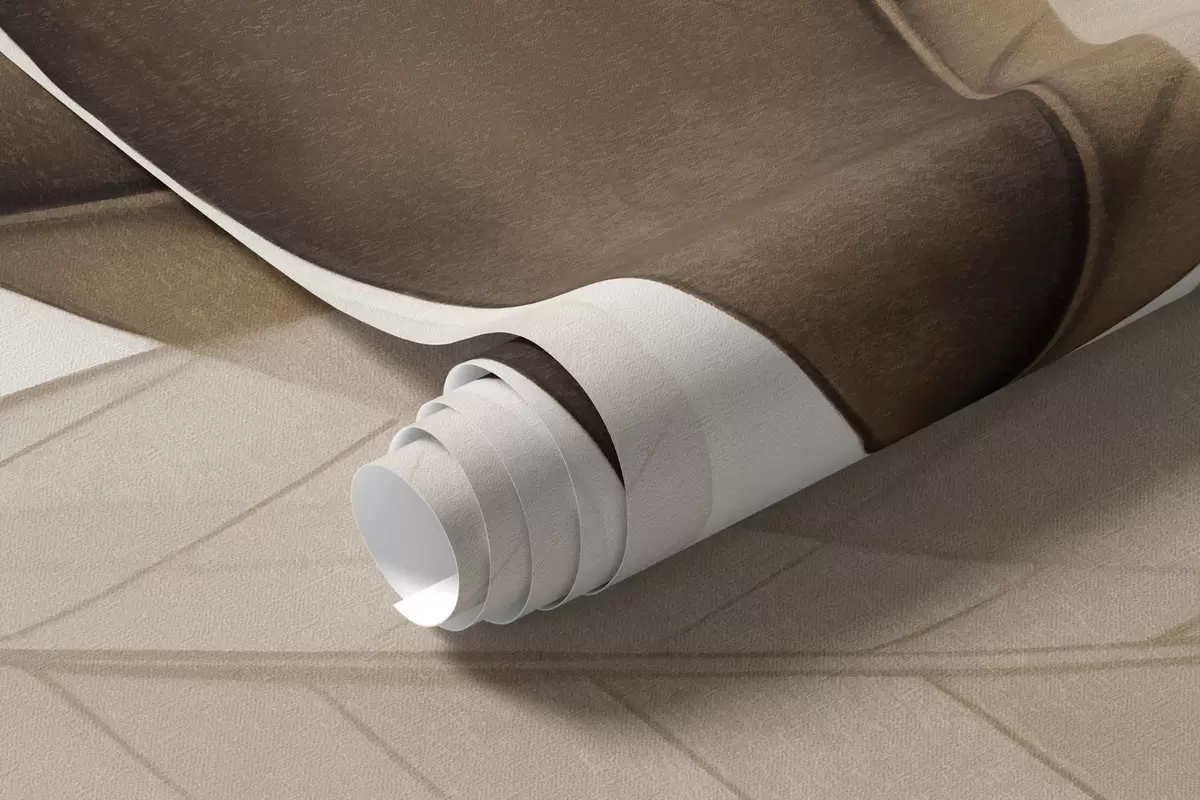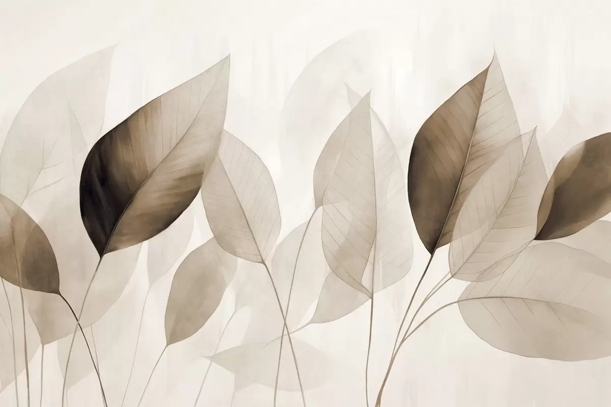 Papier peint photo Peinture texturée imitant des feuilles dans des tons bruns et beiges, avec des nervures et des tiges délicates N° w09400v1