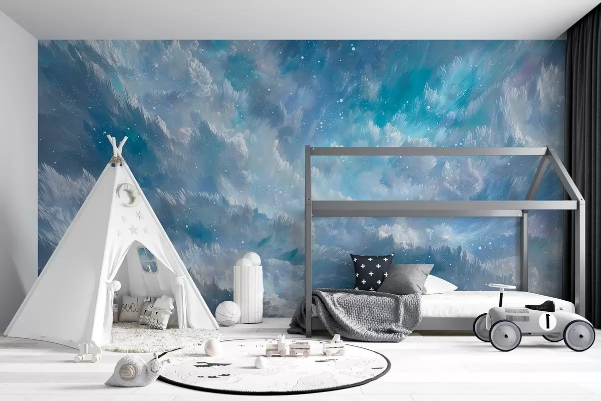 Papier peint photo Nuages abstraits célestes dans une palette pastel fraîche N° w09459