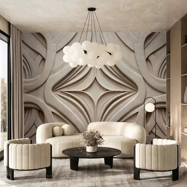 Papier peint photo Imprimé géométrique abstrait symétrique texturé, couleur beige clair, style art déco, détails complexes N° w09473