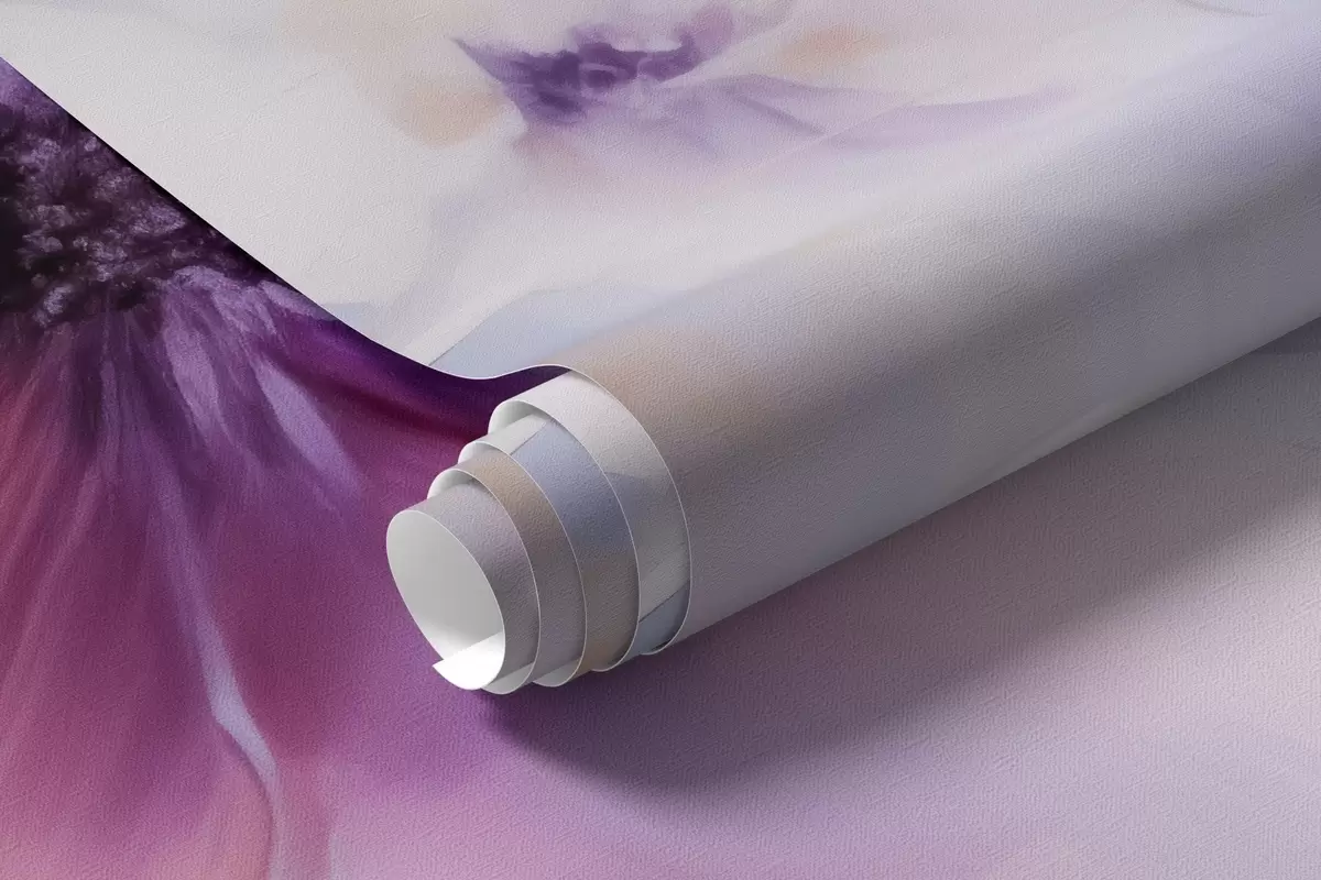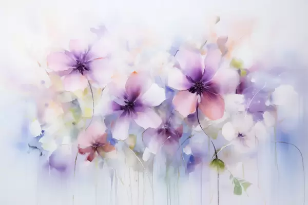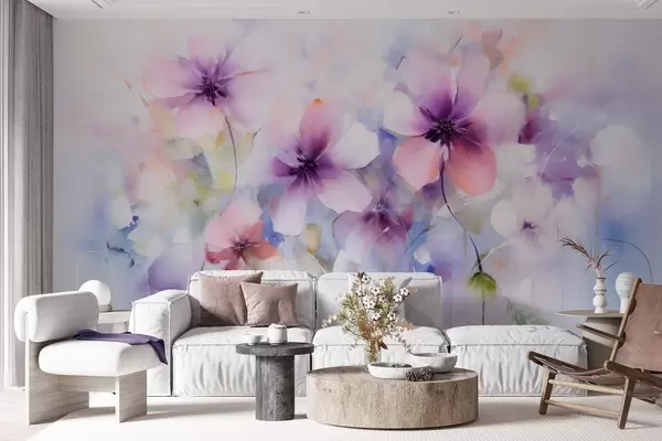 Papier peint photo Fleurs printanières aquarellées dans des tons roses et violets N° w09502