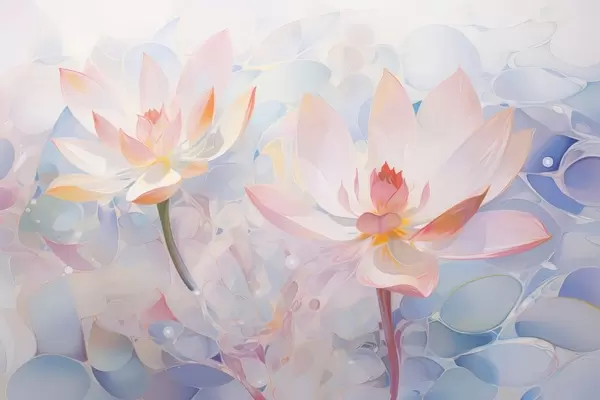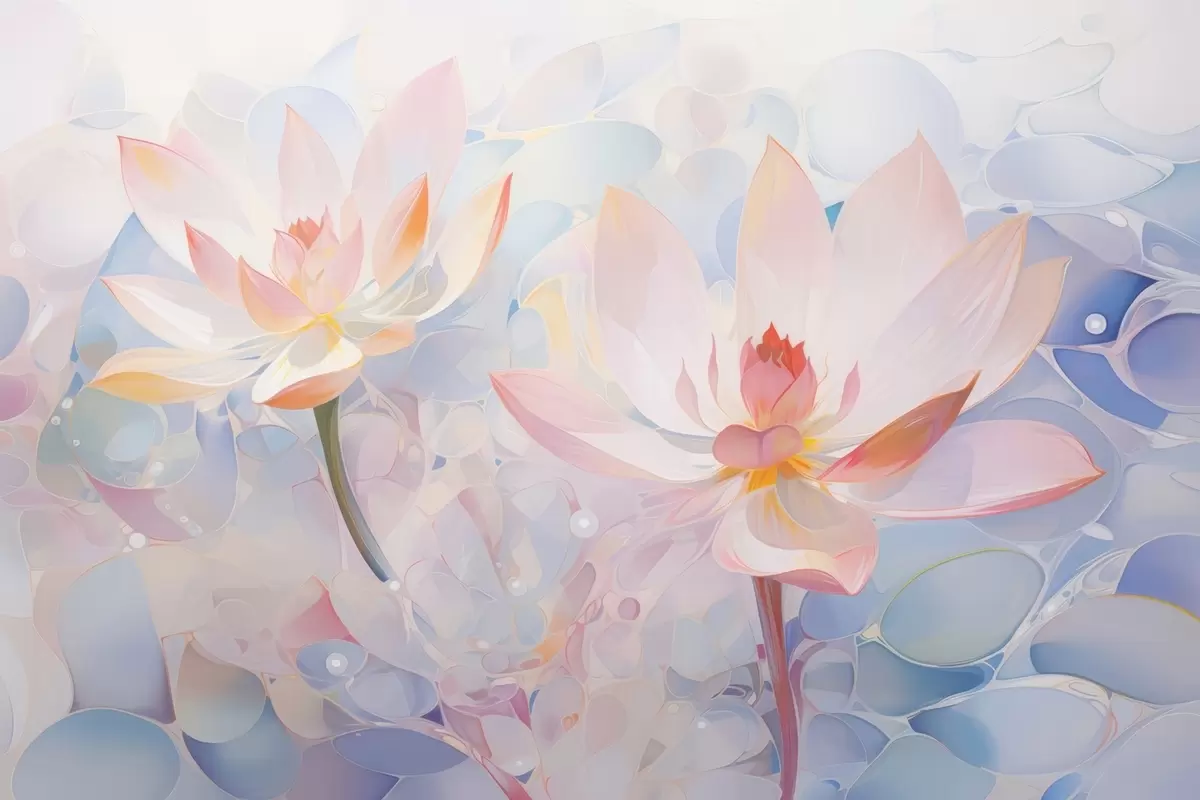 Papier peint photo Fleurs de lotus pastel douces dans un style aquarelle N° w09512