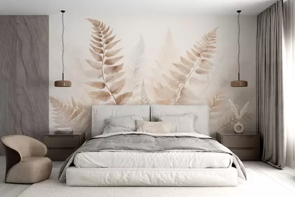Papier peint photo Fronde de fougère séchée texturée dans différentes nuances de brun, avec un fond doux et clair dans un style aquarelle. N° w09615