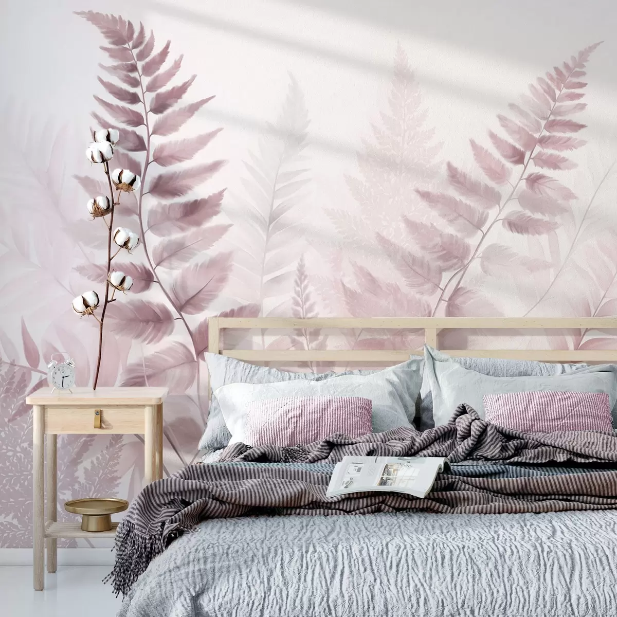 Papier peint photo Fougères séchées texturées dans différentes nuances de rose, sur un fond doux et clair de style aquarelle. N° w09615v2