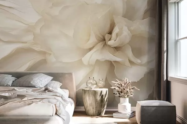 Papier peint photo Fleur délicate et texturée, de couleur claire, aux pétales translucides, sur fond abstrait doux. N° w09632