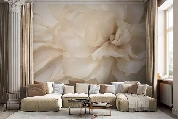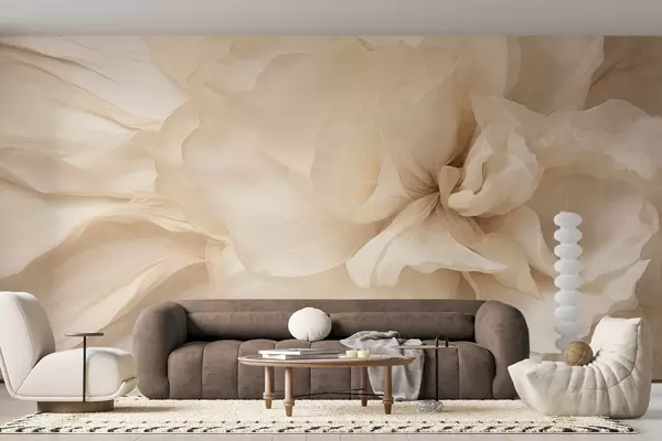 Papier peint photo Fleur délicate et texturée, de couleur claire, aux pétales translucides, sur fond abstrait doux. N° w09632