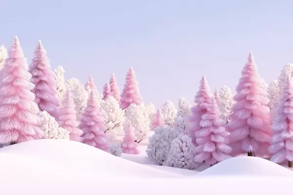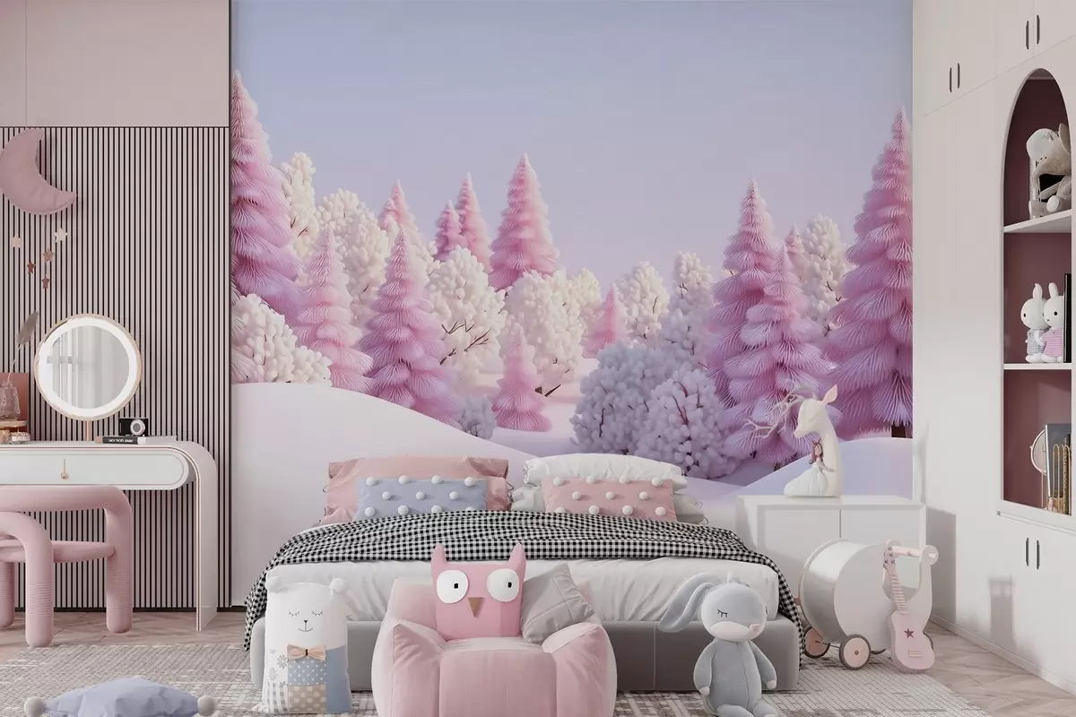 Papier peint photo Une forêt hivernale enneigée aux teintes roses N° w09654