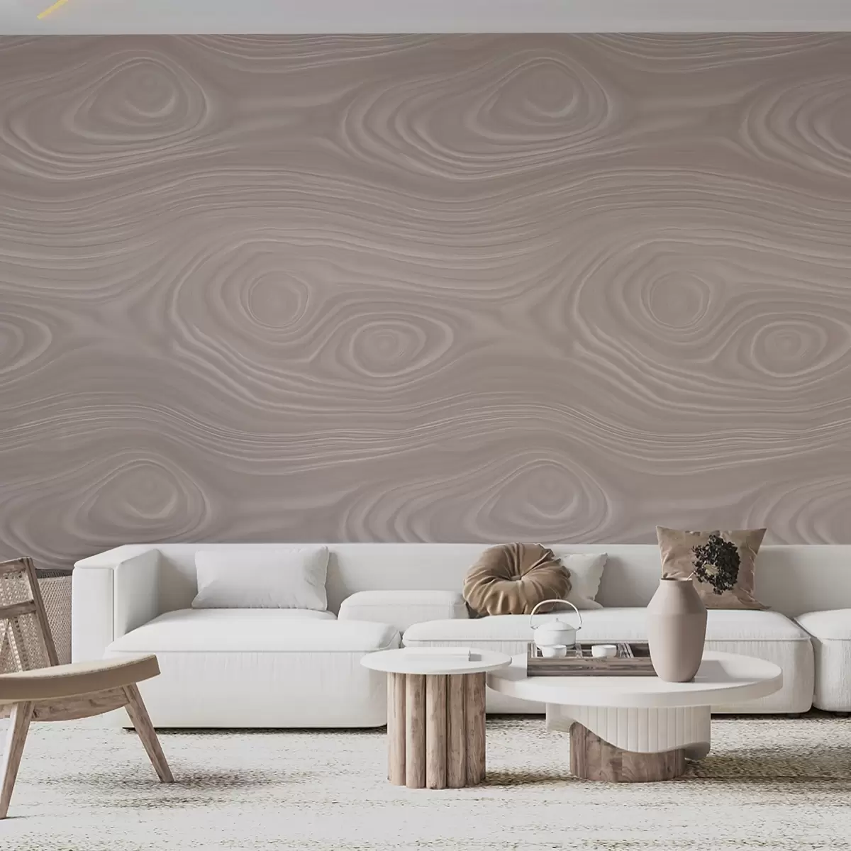 Papier peint photo Motif abstrait beige aux lignes fluides, imitant la texture du bois naturel N° w09681