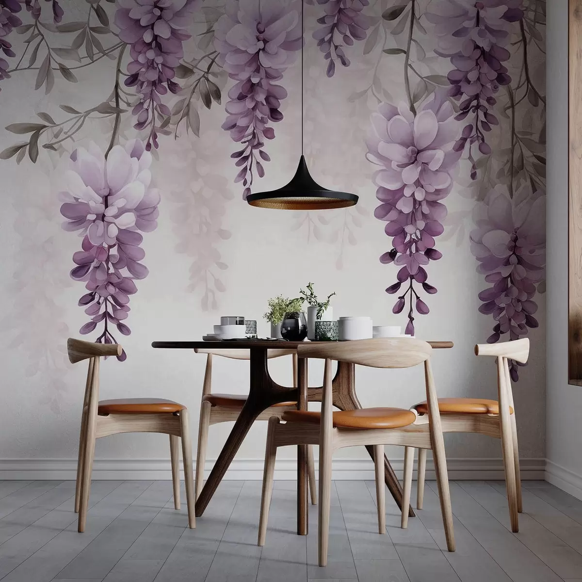 Papier peint photo Délicates et larges branches de lavande suspendues au mur, imitation aquarelle N° w09690