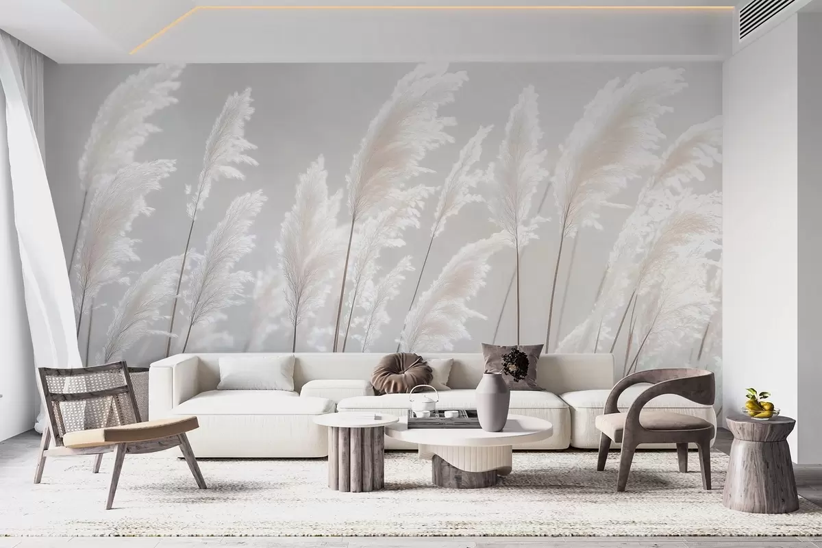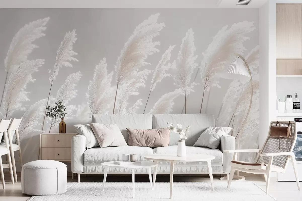 Papier peint photo Herbe de pampa blanche et douce dans la douce lumière du matin N° w09717