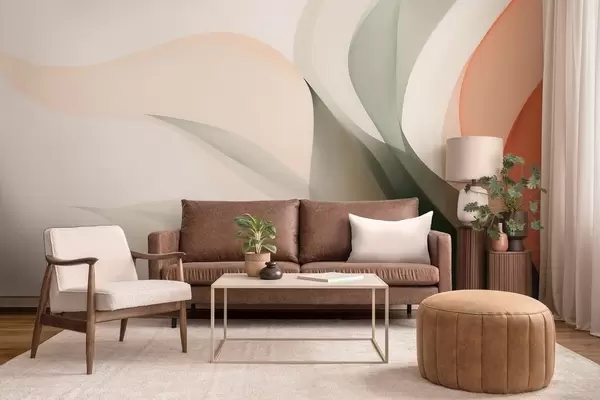 Papier peint photo Vagues abstraites aux tons orange et vert N° w09718