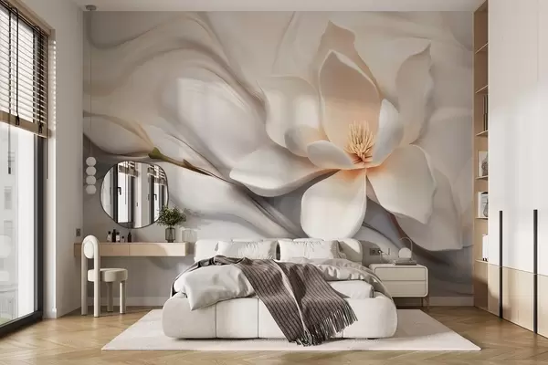Papier peint photo Magnolia blanc en trois dimensions avec imitation de texture marbrée en relief N° w09729