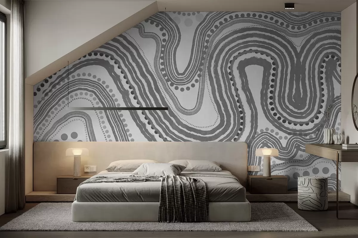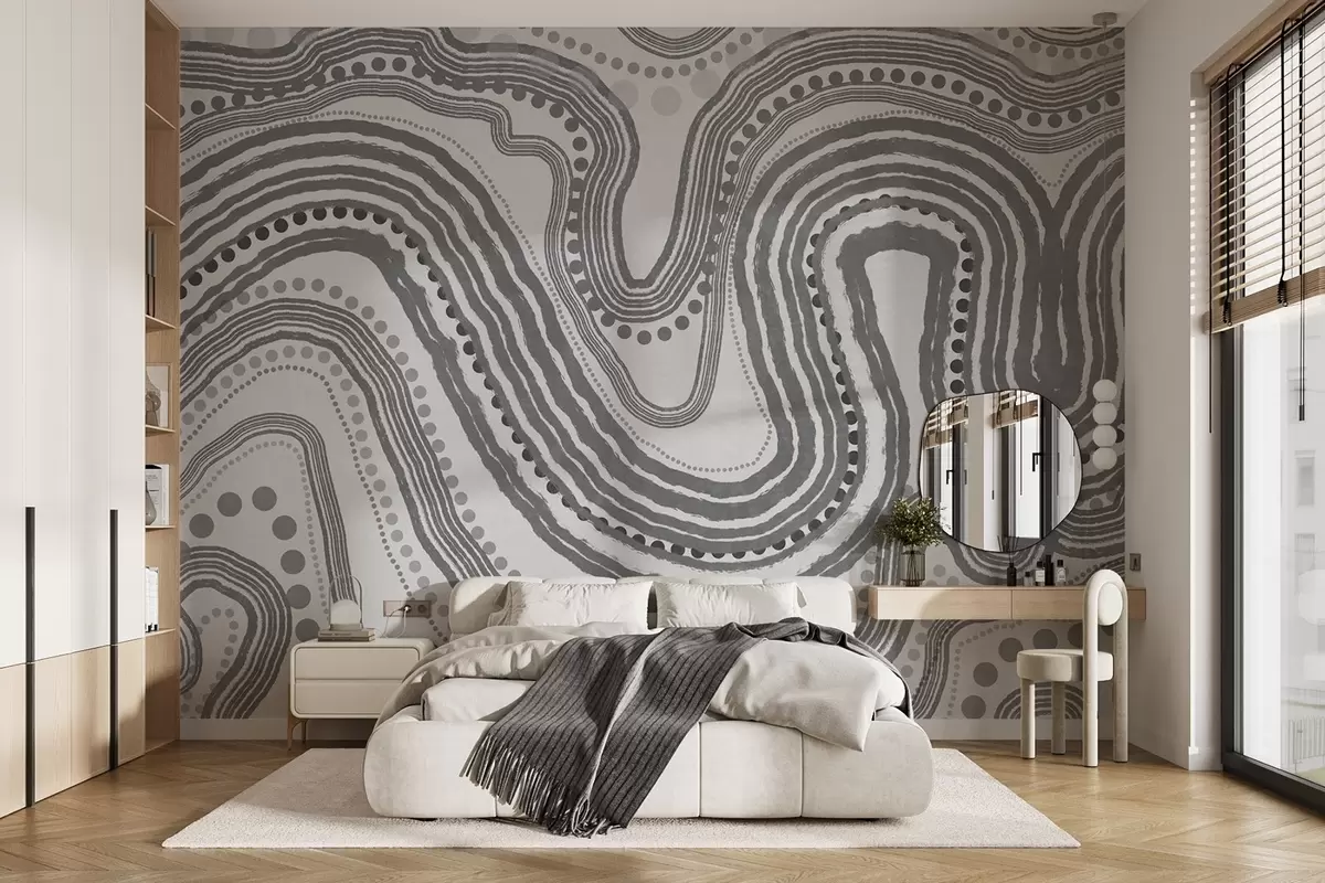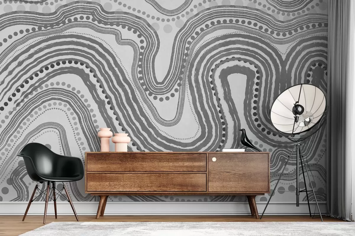 Papier peint photo Lignes ondulées et points abstraits gris foncé, art moderne texturé N° w09747v2