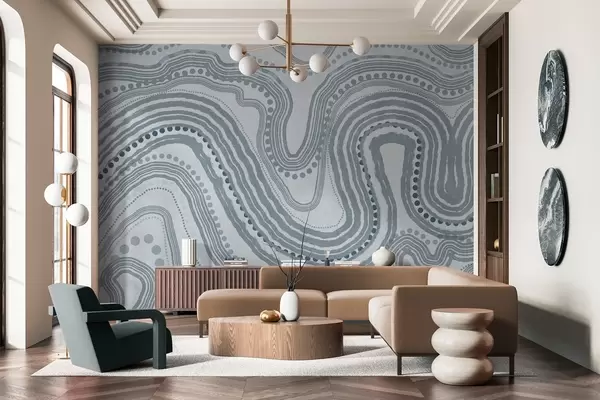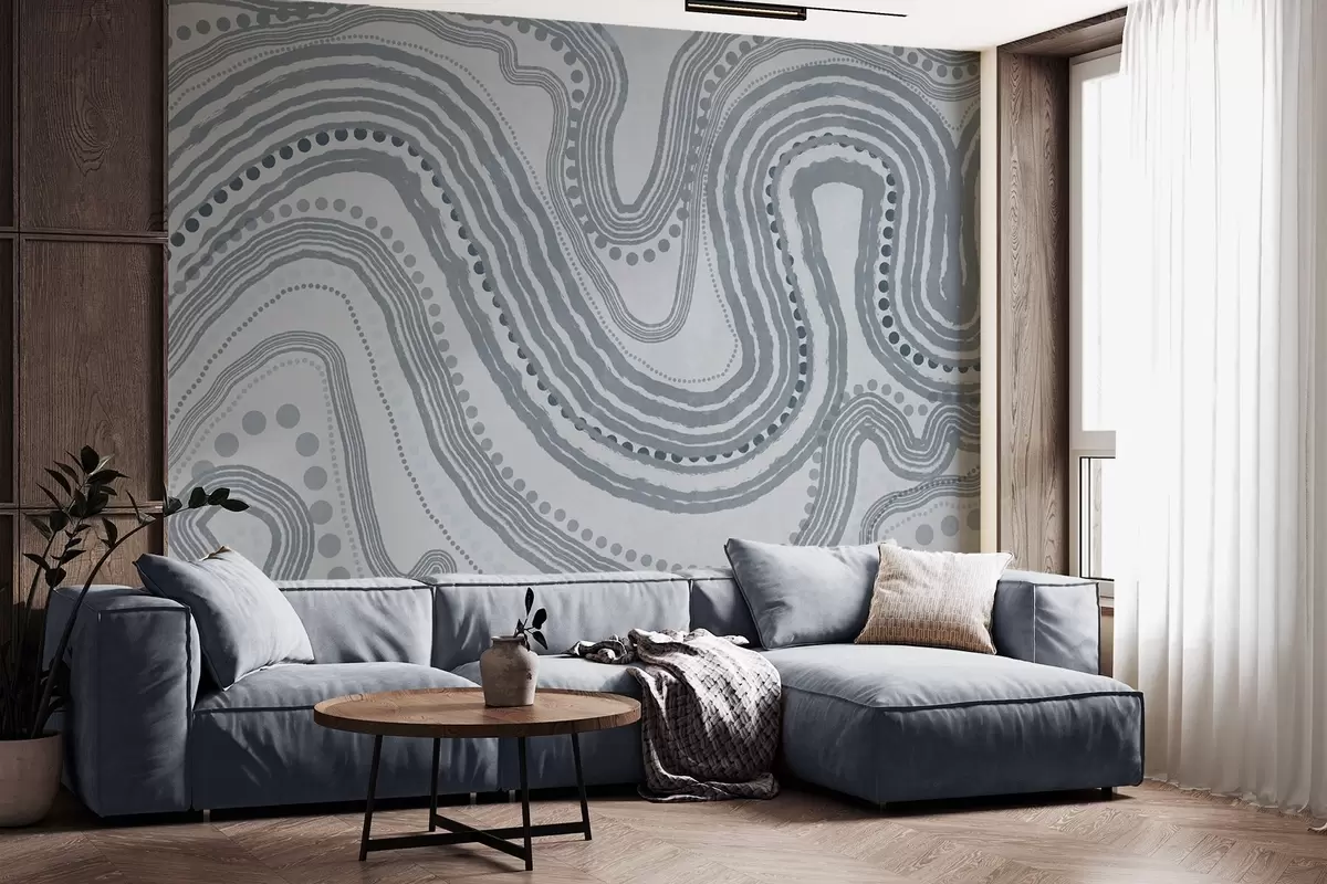 Papier peint photo Lignes ondulées et points bleus abstraits, art moderne texturé N° w09747v3