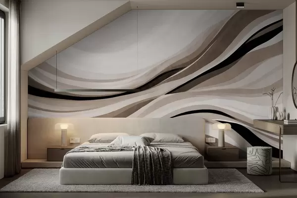 Papier peint photo Lignes ondulées abstraites dans des tons de beige et de noir sur fond clair, art texturé N° w09748