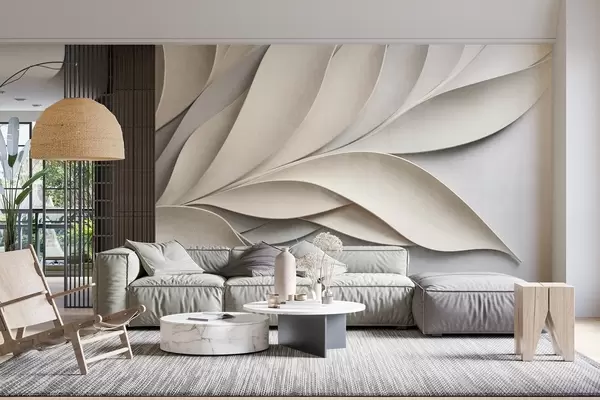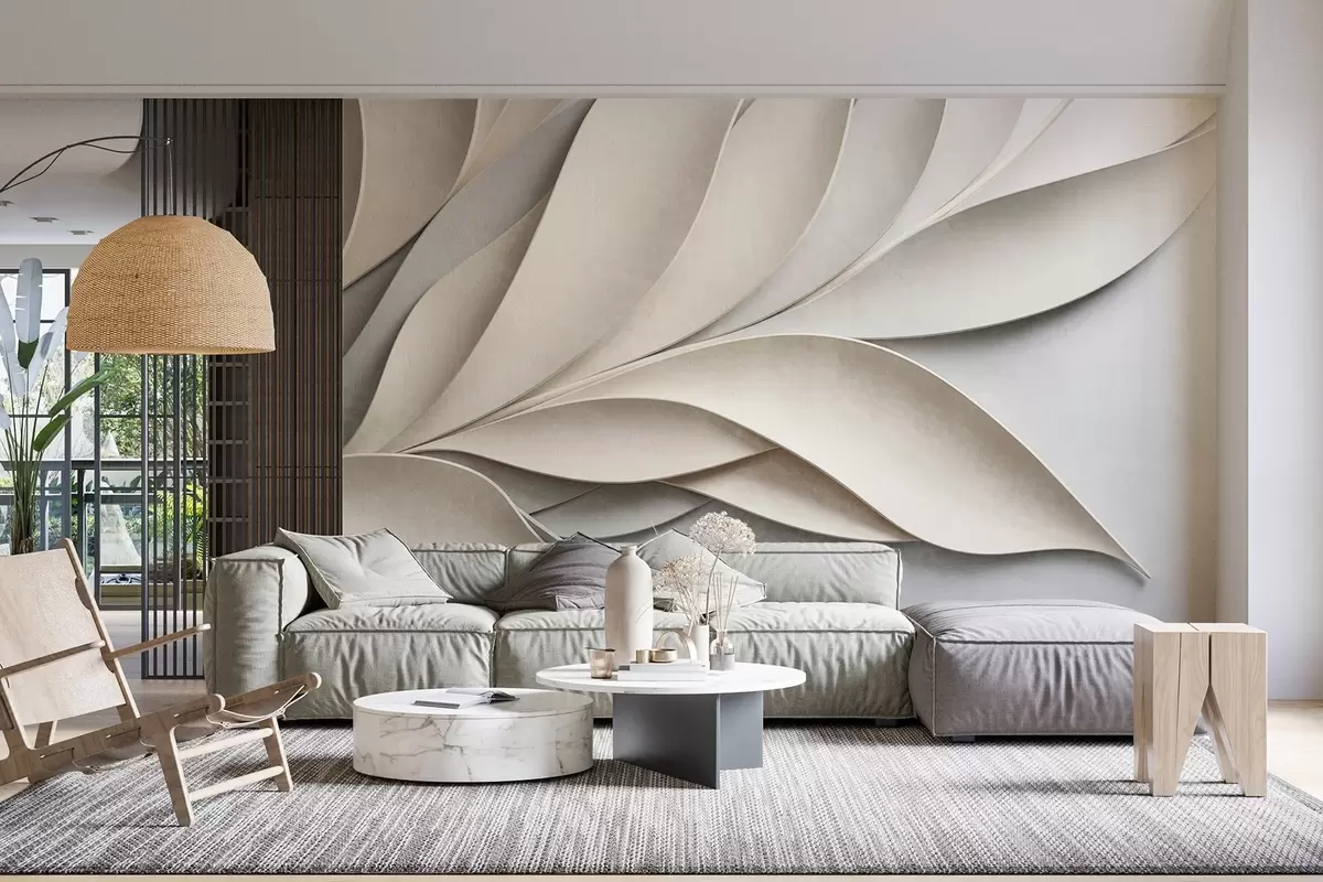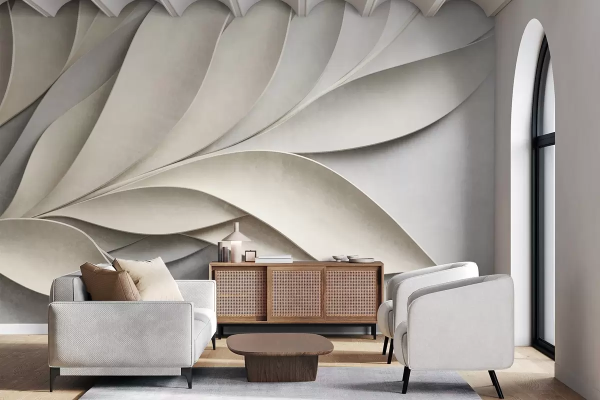 Papier peint photo Feuilles abstraites en beige et gris, art moderne texturé N° w09769