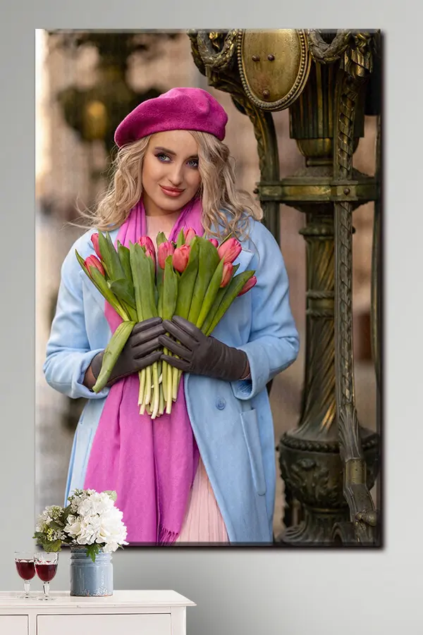 Trois types de matériaux peuvent être commandés : Economic Canvas - matériau dense et durable pour l'impression numérique, identique à la toile de peintre, surface imperméable, reproduction réaliste des détails, matériau à grain moyen. Premium Canvas - la texture ressemble à celle d'une toile de peintre (petits fils entrelacés). Reproduction douce et détaillée de l'image sur une surface mate. Eco-Premium - tissu 100 % coton de haute qualité. Grâce aux fibres naturelles de coton, le matériau est durable et résistant à l'usure. Excellente reproduction des couleurs et des détails.