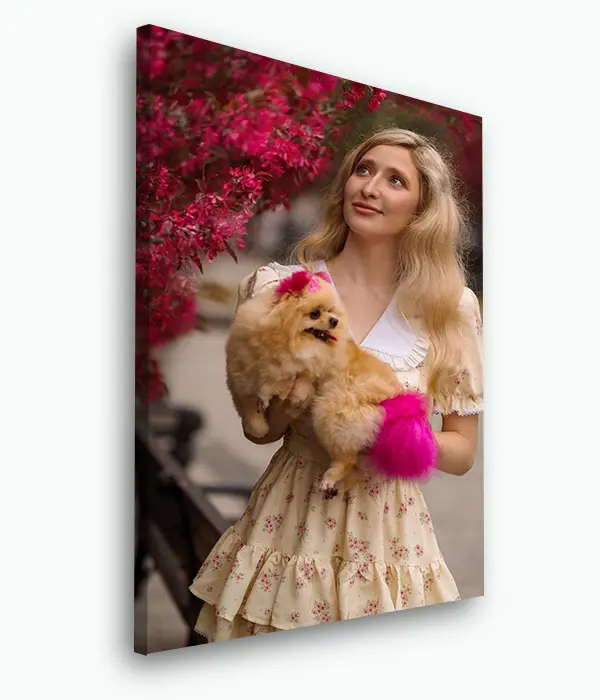 Trois types de matériaux peuvent être commandés : Economic Canvas - matériau dense et durable pour l'impression numérique, identique à la toile de peintre, surface imperméable, reproduction réaliste des détails, matériau à grain moyen. Premium Canvas - la texture ressemble à celle d'une toile de peintre (petits fils entrelacés). Reproduction douce et détaillée de l'image sur une surface mate. Eco-Premium - tissu 100 % coton de haute qualité. Grâce aux fibres naturelles de coton, le matériau est durable et résistant à l'usure. Excellente reproduction des couleurs et des détails.