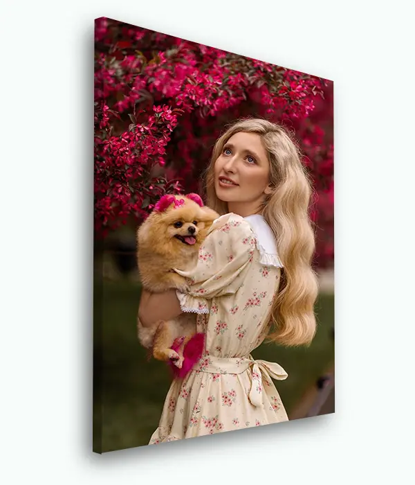 Trois types de matériaux peuvent être commandés : Economic Canvas - matériau dense et durable pour l'impression numérique, identique à la toile de peintre, surface imperméable, reproduction réaliste des détails, matériau à grain moyen. Premium Canvas - la texture ressemble à celle d'une toile de peintre (petits fils entrelacés). Reproduction douce et détaillée de l'image sur une surface mate. Eco-Premium - tissu 100 % coton de haute qualité. Grâce aux fibres naturelles de coton, le matériau est durable et résistant à l'usure. Excellente reproduction des couleurs et des détails.
