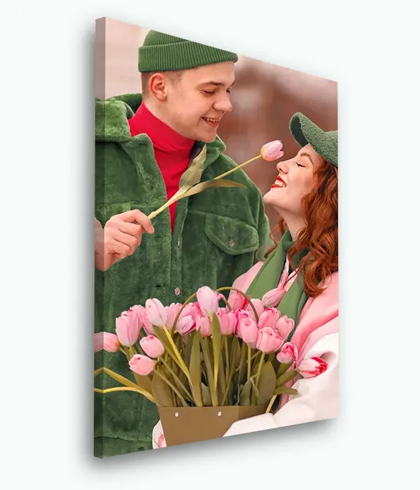 Trois types de matériaux peuvent être commandés : Economic Canvas - matériau dense et durable pour l'impression numérique, identique à la toile de peintre, surface imperméable, reproduction réaliste des détails, matériau à grain moyen. Premium Canvas - la texture ressemble à celle d'une toile de peintre (petits fils entrelacés). Reproduction douce et détaillée de l'image sur une surface mate. Eco-Premium - tissu 100 % coton de haute qualité. Grâce aux fibres naturelles de coton, le matériau est durable et résistant à l'usure. Excellente reproduction des couleurs et des détails.