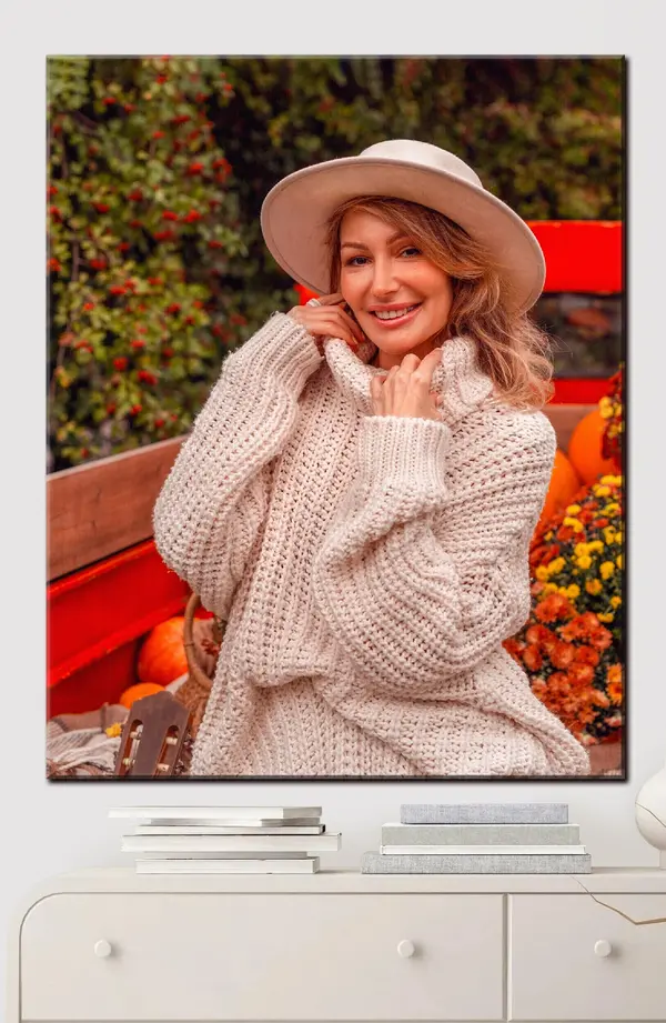 Trois types de matériaux peuvent être commandés : Economic Canvas - matériau dense et durable pour l'impression numérique, identique à la toile de peintre, surface imperméable, reproduction réaliste des détails, matériau à grain moyen. Premium Canvas - la texture ressemble à celle d'une toile de peintre (petits fils entrelacés). Reproduction douce et détaillée de l'image sur une surface mate. Eco-Premium - tissu 100 % coton de haute qualité. Grâce aux fibres naturelles de coton, le matériau est durable et résistant à l'usure. Excellente reproduction des couleurs et des détails.