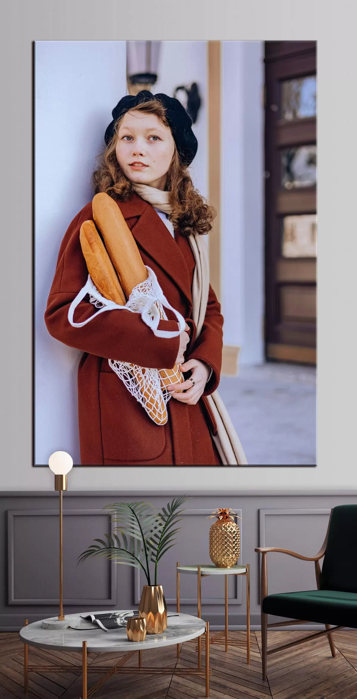 Trois types de matériaux peuvent être commandés : Economic Canvas - matériau dense et durable pour l'impression numérique, identique à la toile de peintre, surface imperméable, reproduction réaliste des détails, matériau à grain moyen. Premium Canvas - la texture ressemble à celle d'une toile de peintre (petits fils entrelacés). Reproduction douce et détaillée de l'image sur une surface mate. Eco-Premium - tissu 100 % coton de haute qualité. Grâce aux fibres naturelles de coton, le matériau est durable et résistant à l'usure. Excellente reproduction des couleurs et des détails.