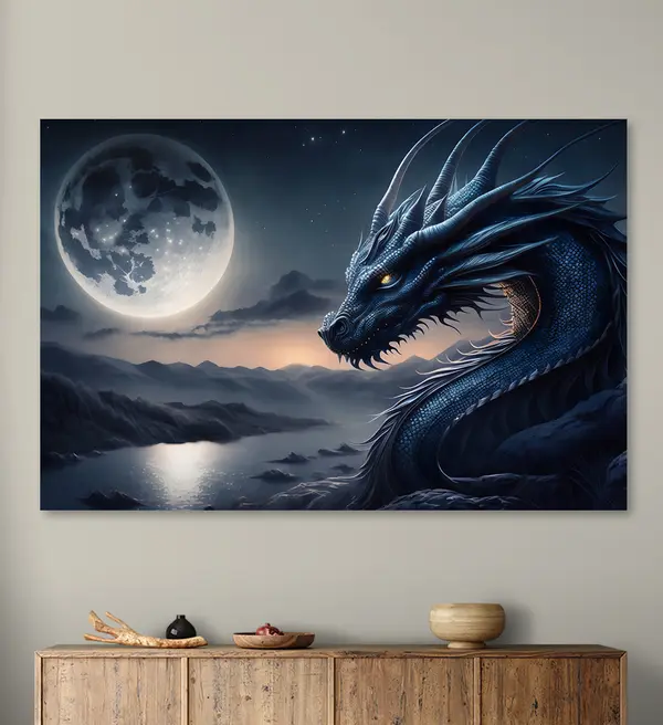 Peinture Le dragon regarde la pleine lune Art. s32612