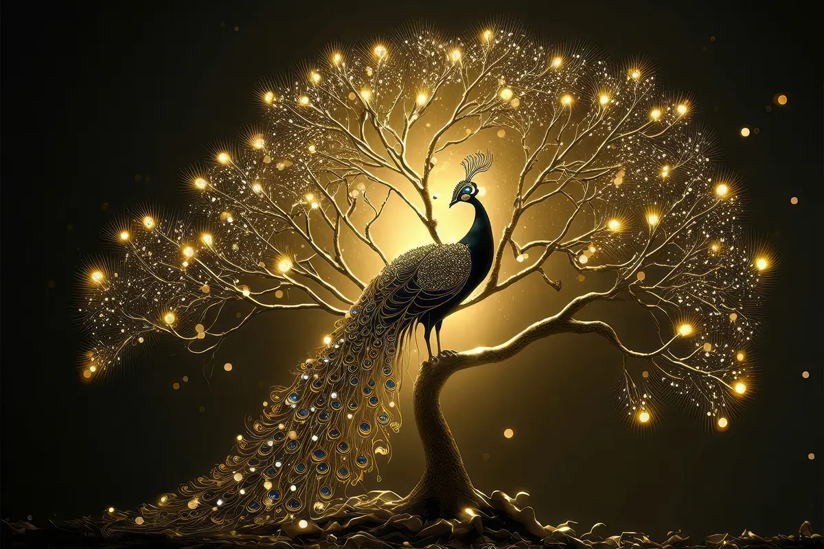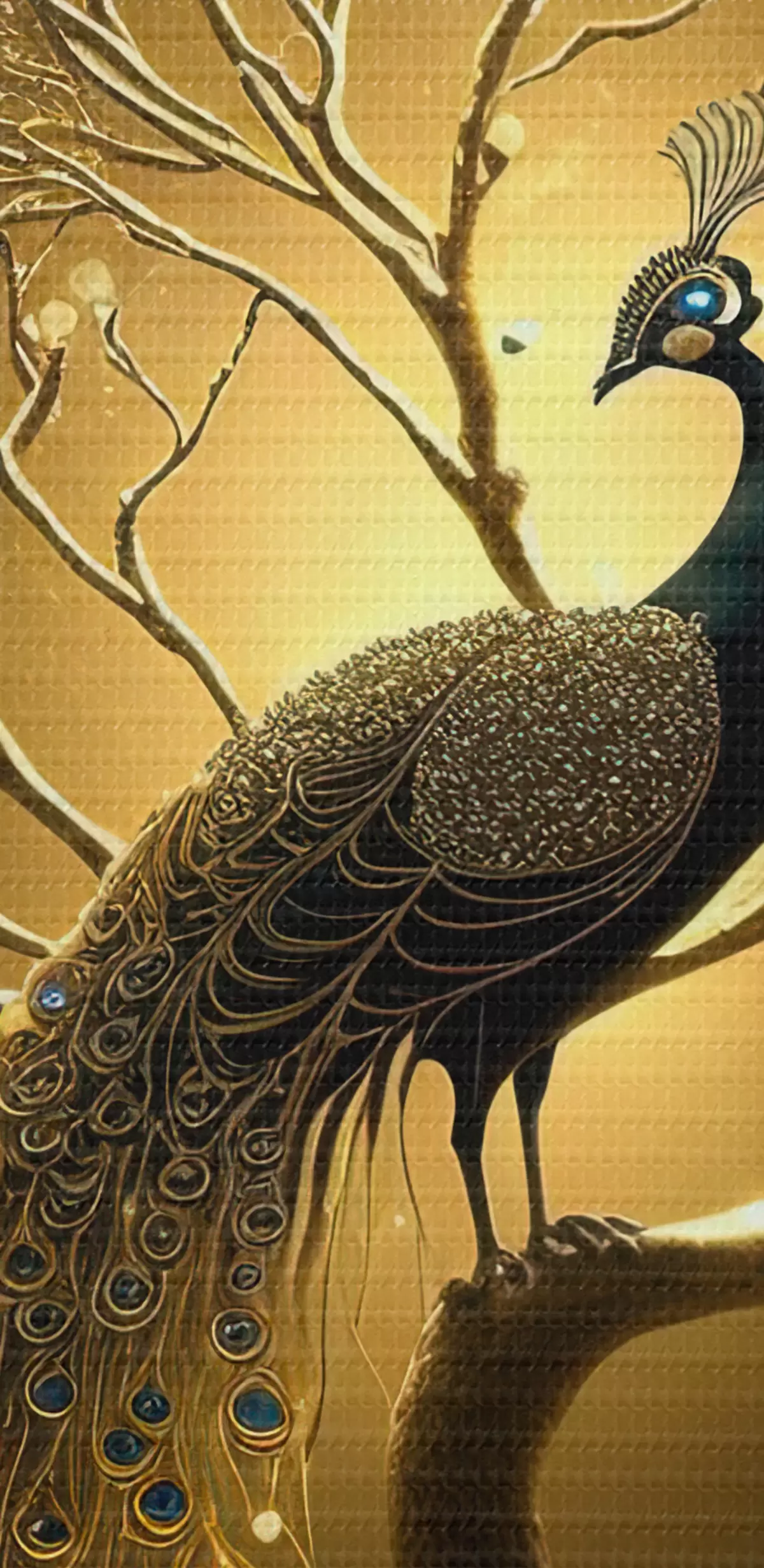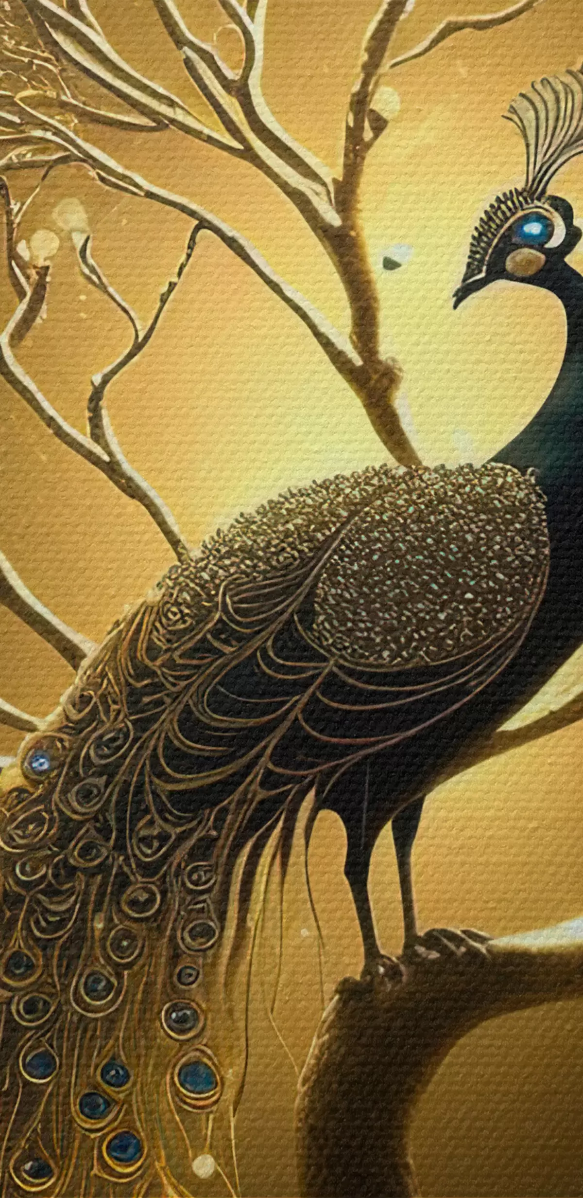Peinture Beau paon en couleur dorée sur fond sombre Art. s34876