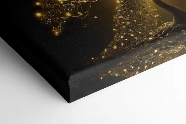 Peintures Beau paon en couleur dorée sur fond sombre s34876