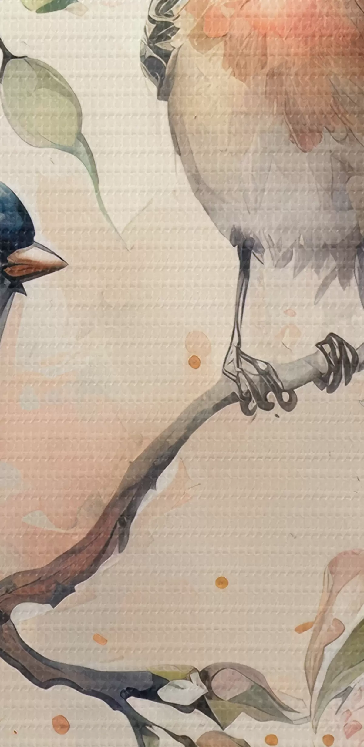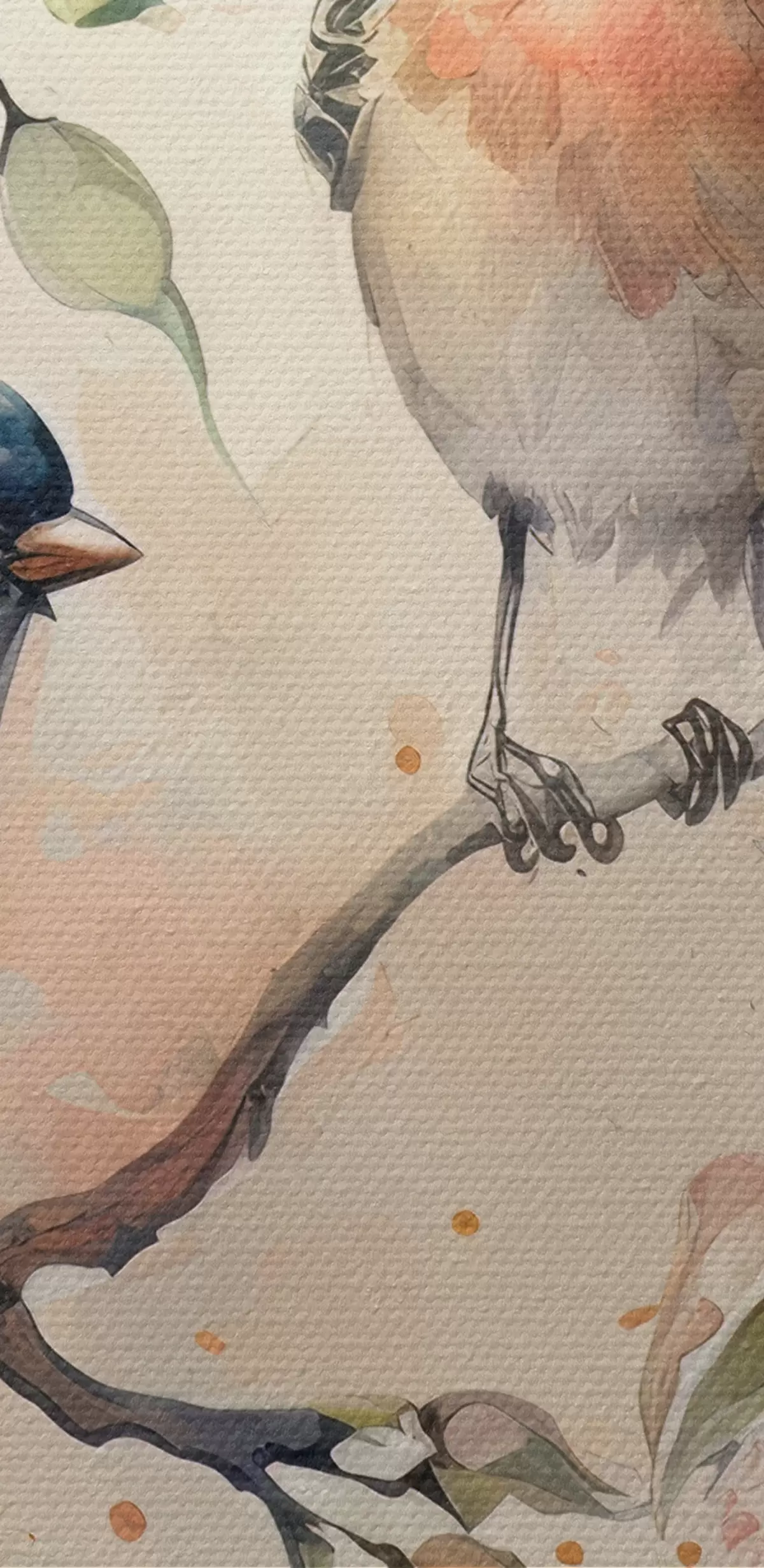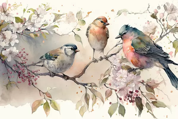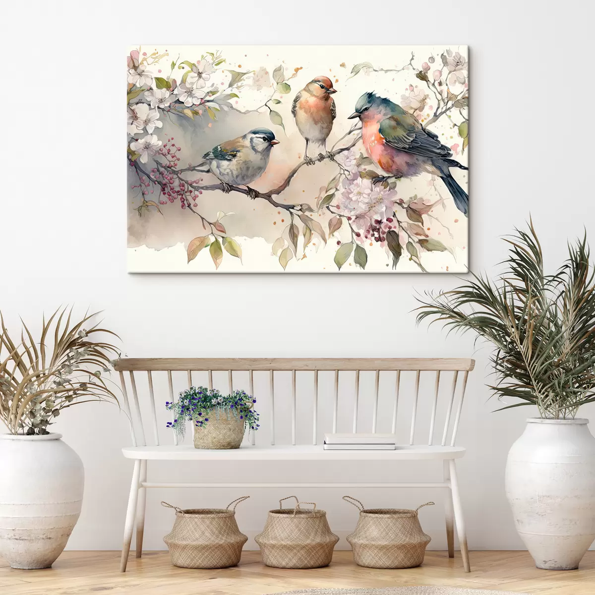 Peinture Oiseaux multicolores sur une branche d'arbre en fleurs Art. s34490