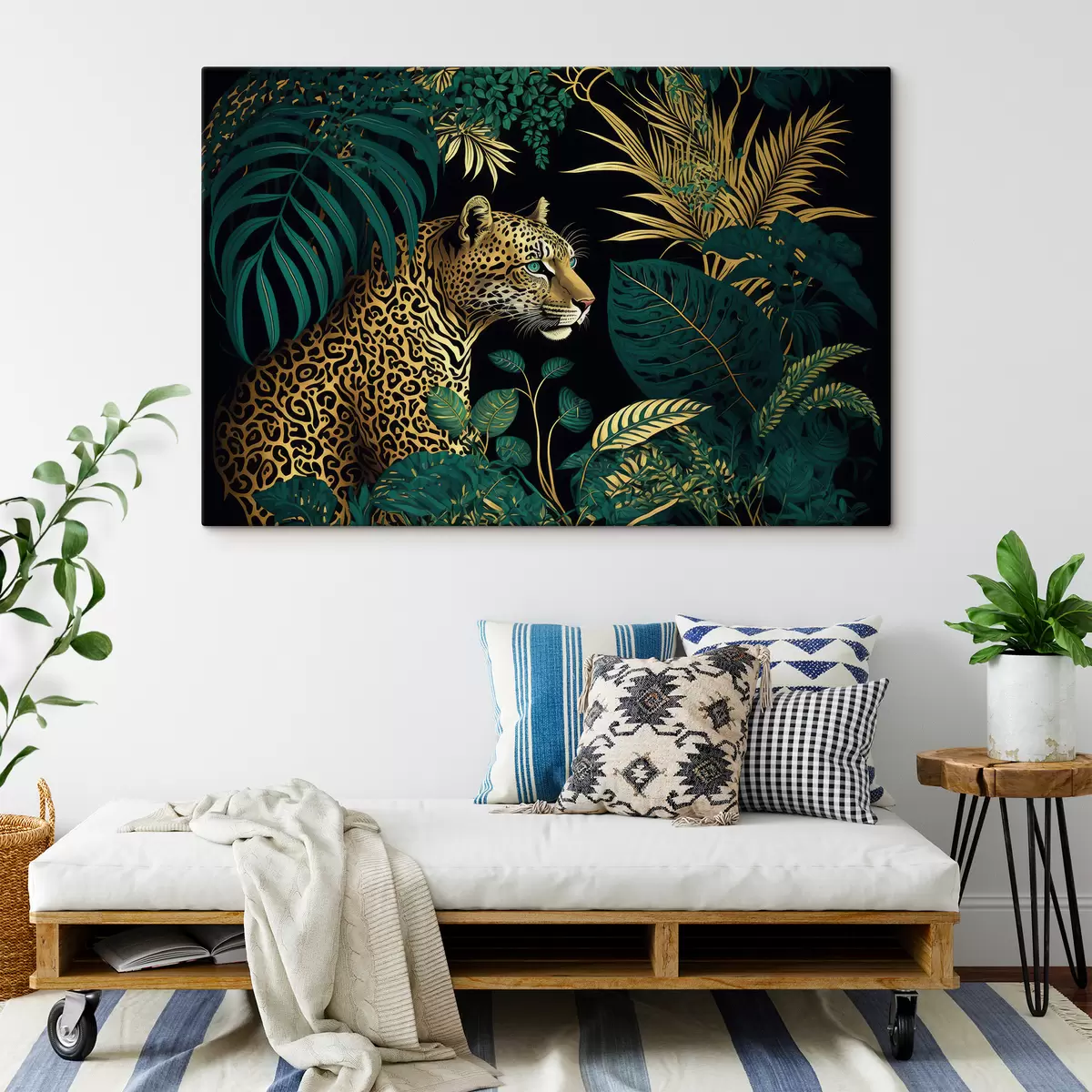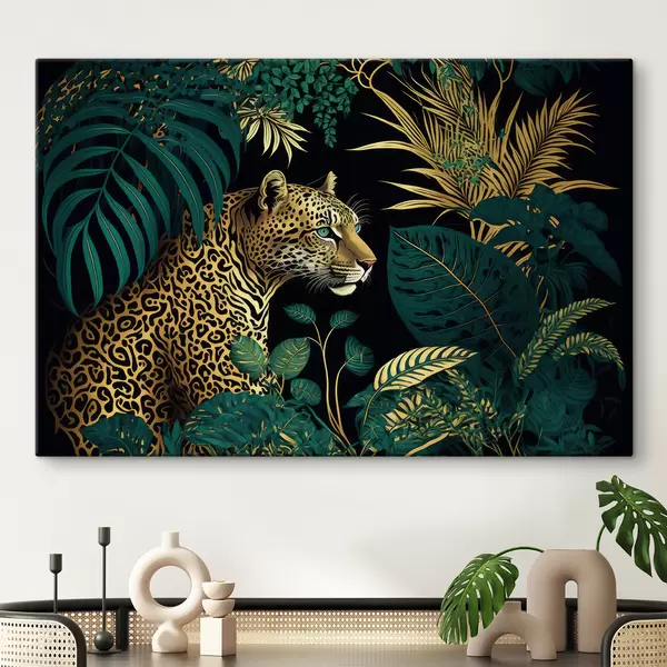 Peinture Léopard aux yeux verts dans la brousse tropicale Art. s33932