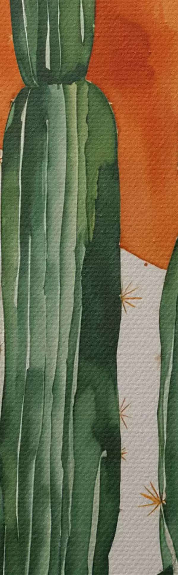 Peinture Cactus dans le désert contre le soleil à l'aquarelle Art. s36269