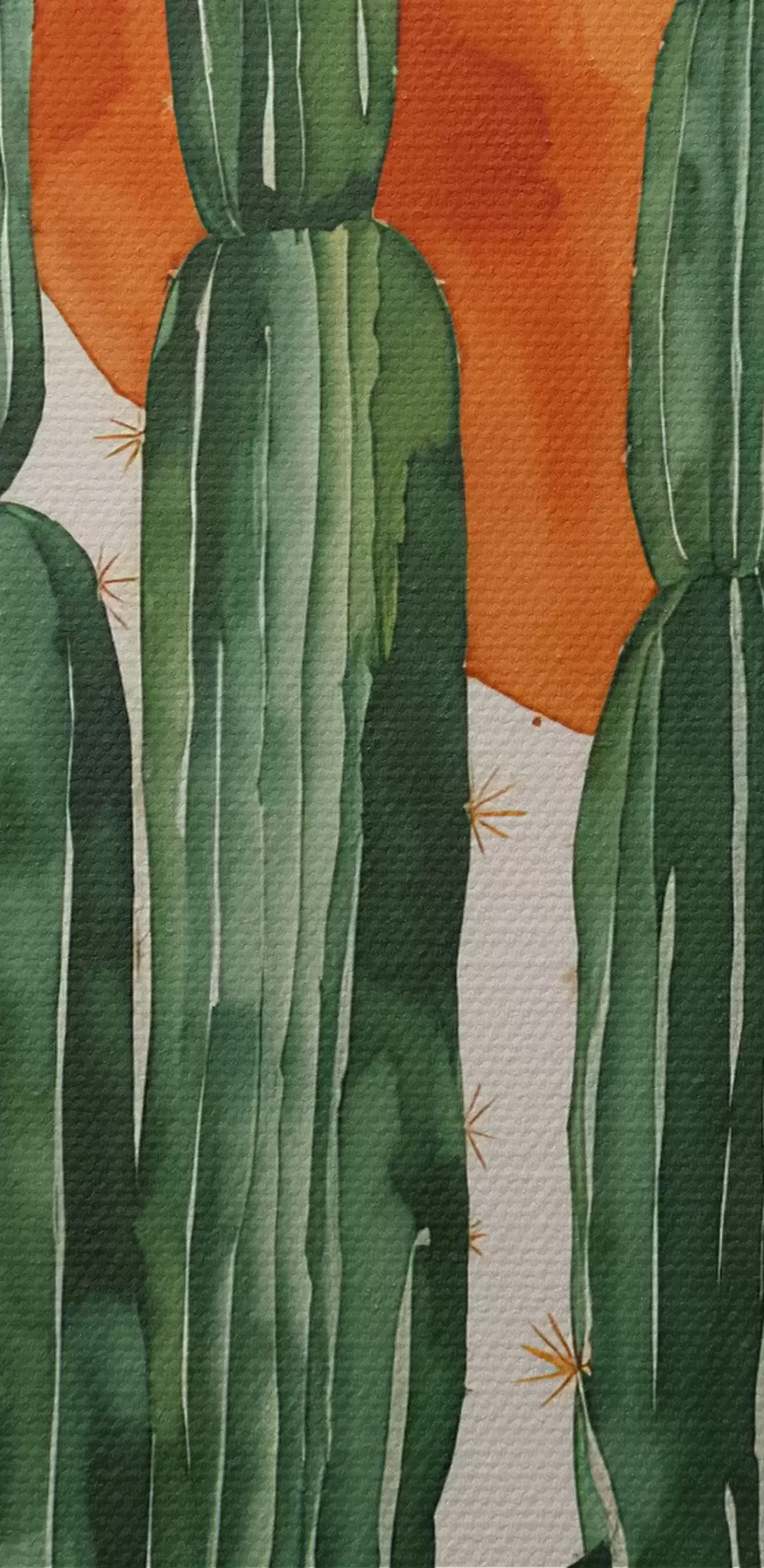 Peintures Cactus dans le désert contre le soleil à l'aquarelle s36269