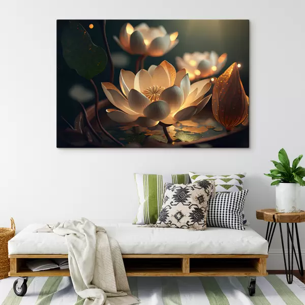 Trois types de matériaux peuvent être commandés : Economic Canvas - matériau dense et durable pour l'impression numérique, identique à la toile de peintre, surface imperméable, reproduction réaliste des détails, matériau à grain moyen. Premium Canvas - la texture ressemble à celle d'une toile de peintre (petits fils entrelacés). Reproduction douce et détaillée de l'image sur une surface mate. Eco-Premium - tissu 100 % coton de haute qualité. Grâce aux fibres naturelles de coton, le matériau est durable et résistant à l'usure. Excellente reproduction des couleurs et des détails.