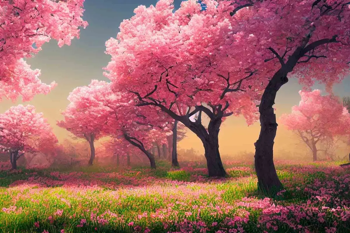 Peinture Cerisiers en fleurs dans une lumière douce Art. s35703
